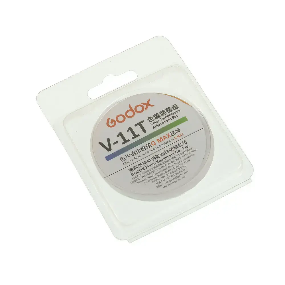 Godox V-11T – набор цветных гелевых "фолиевых" светофильтров для коррекции цветовой температуры, изменения контрастности, яркости и цветового решения при съемке различных объектов.