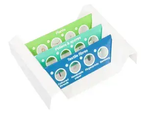 Набор микропрепаратов Levenhuk Discovery «Флора» на тему ботаники – это 3 тематических слайда, на каждом из которых расположено 4 образца. Препараты имеют порядковые номера и подписи, поэтому в них легко ориентироваться. Набор станет прекрасным дополнением к биологическим микроскопам с нижним расположением подсветки, в том числе и к детским моделям. Марка микроскопа неважна.