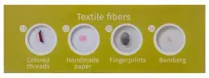 Образцы расположены на тематических слайдах, покрытых цветной бумагой с круглыми окошками. Все микропрепараты подписаны. Набор упакован в красочную брендированную коробку.