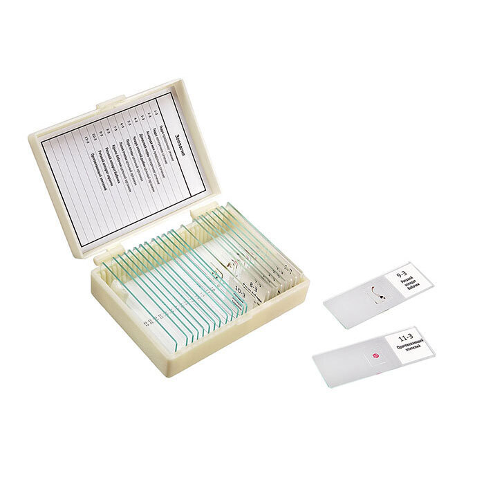 Наборы готовых препаратов предназначены для самостоятельного изучения и проведения школьных лабораторных работ по основным курсам биологии: