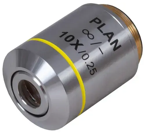 Планахроматический объектив Levenhuk MED 10x/беск – аксессуар для микроскопов, длина тубуса которых скорректирована на бесконечность. Подобные микроскопы широко применяются в лабораториях, так как позволяют свободно использовать дополнительные исследовательские инструменты – поляризаторы, фазово-контрастные устройства и другие.