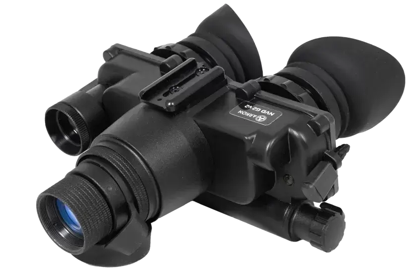 Очки ночного видения NVD G2 V2 – многофункциональное устройство разработанное российским брендом Arkon Technologies. Предприятие создано на базе группы компаний ЦЭК, много лет занимающейся передовыми разработками решений в области тепловизионного и ночного видения. Модель оснащена системой имитации бинокулярного зрения. Arkon NVD G2 V2 построены на базе электронно-оптического преобразователя (ЭОП) поколения Gen 2+, с использованием зеленого люминофора. Автоматизированное регулирование усиления и защита от сильных световых источников устраняют необходимость ручного управления. С углом обзора в 40 градусов, прибор позволяет обозревать широкую зону. Оптическое увеличение в 1х сохраняет реальные размеры объектов, что весьма полезно для визуальной оценки расстояния. Превосходство очков перед монокулярами кроется в возможности расслабить глаза и воспринимать изображение обоими глазами. Крепление на шлеме или маске дает возможность держать руки свободными, что улучшает управление оружием и способность быстро адаптироваться к меняющимся условиям. Прибор адаптирован к любым погодным условиям, защищен от влаги, способен пережить падения и неосторожное обращение. Встроенный ИК-осветитель облегчает навигацию в полной тьме и просмотр документации или картографических материалов. Для расширения рабочей дистанции можно применять дополнительный осветитель повышенной мощности.