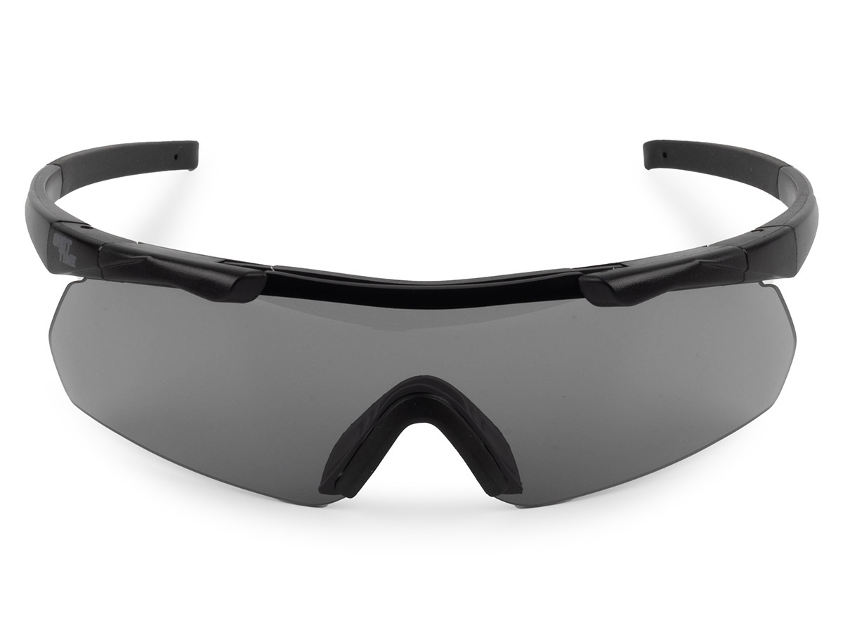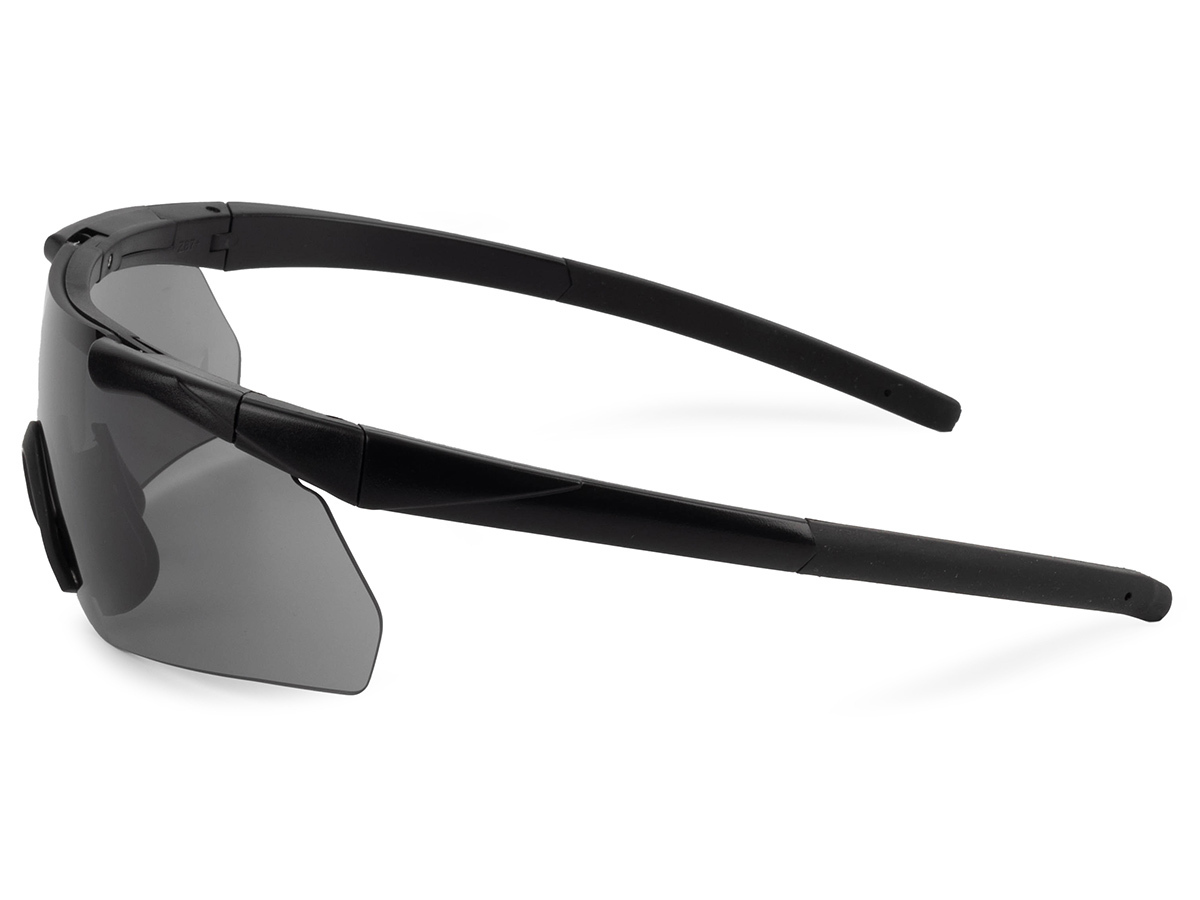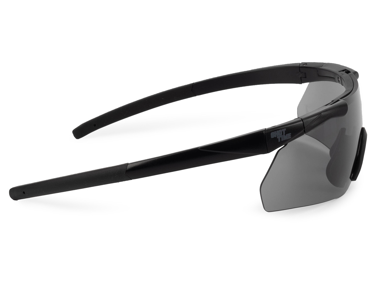 Защитные стрелковые очки ShotTime Caracal с чёрной оправой и серыми линзами. Серые линзы обеспечивают хорошую цветопередачу и отлично защищают глаза от умеренно яркого солнечного света, сохраняя комфорт при работе в тени.