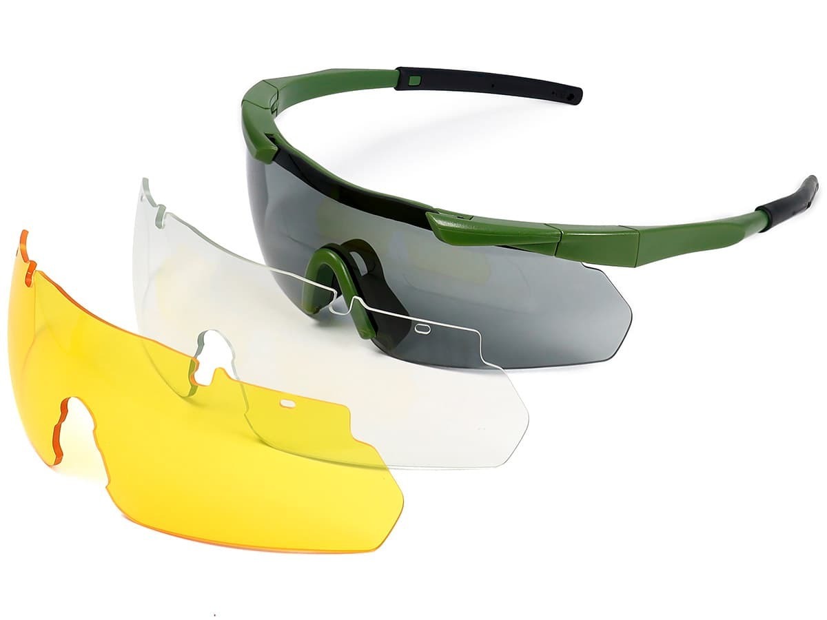 Защитные стрелковые очки ShotTime Lynx, комплект с 3 линзами и чехлом, зелёные
