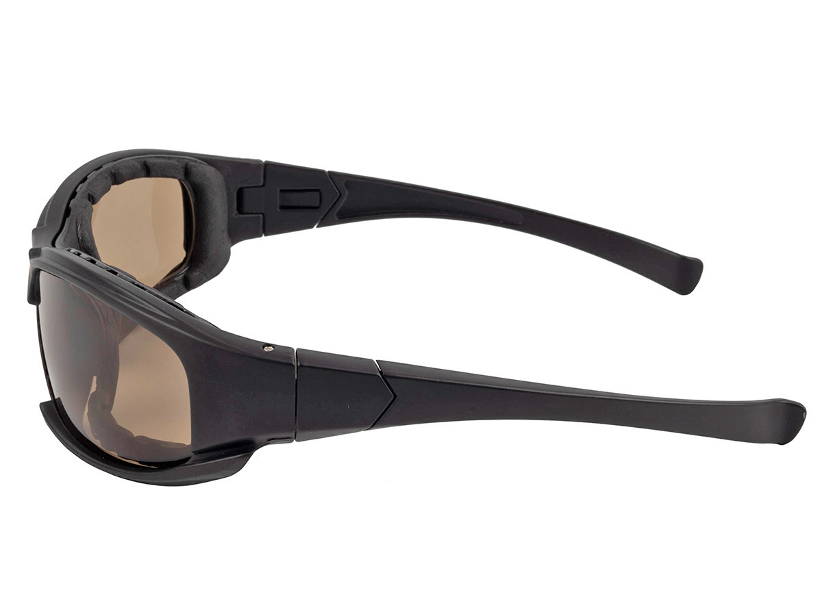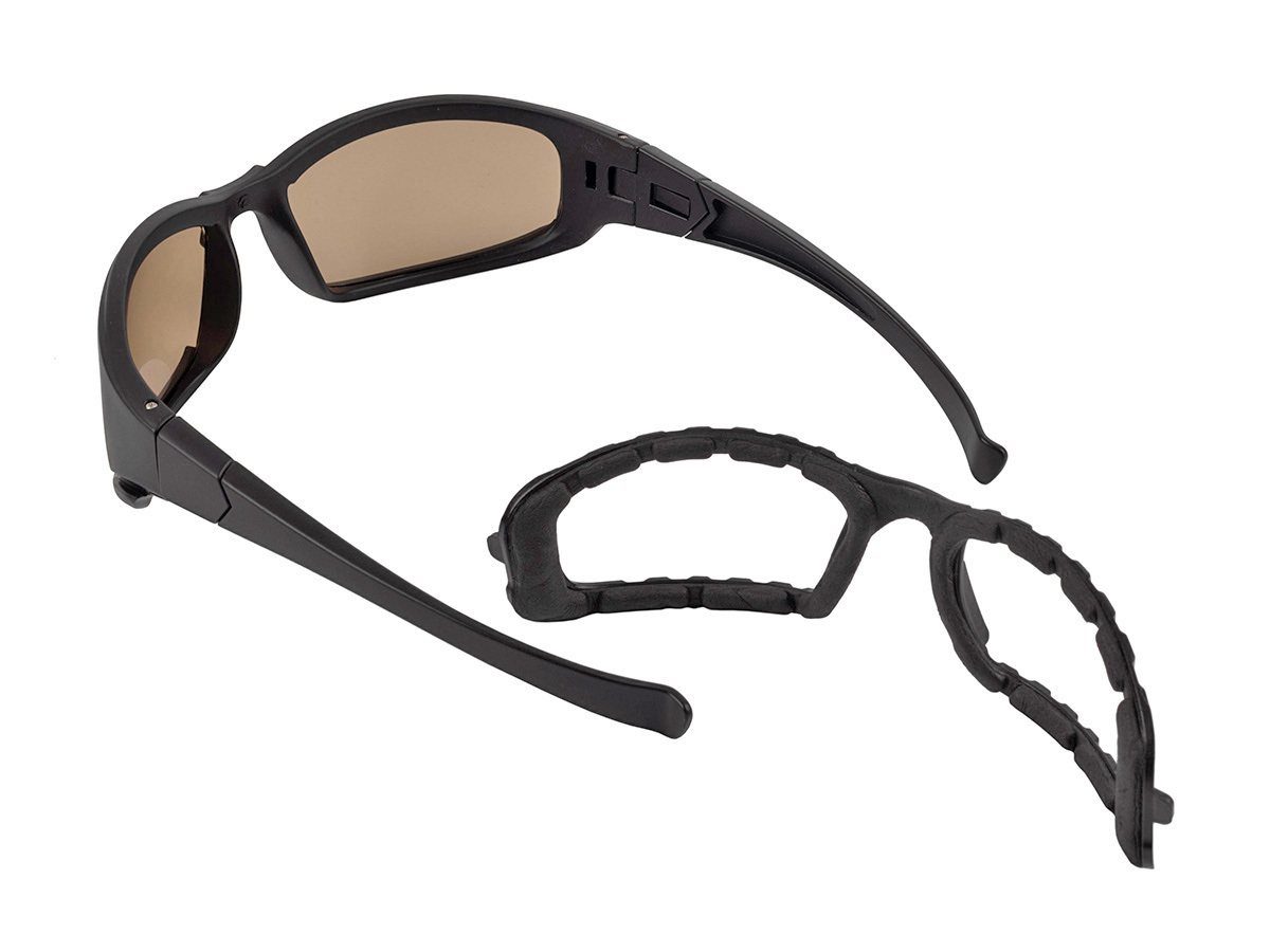 Очки снабжены мягкой накладкой на линзы, прилегающей к области вокруг глаз. Это обеспечивает как дополнительную защиту от ударов, в случае, если нагрузка приходится на очки, так и сокращает промежуток между очками и областью вокруг глаз, предотвращая попадание под очки посторонних предметов.