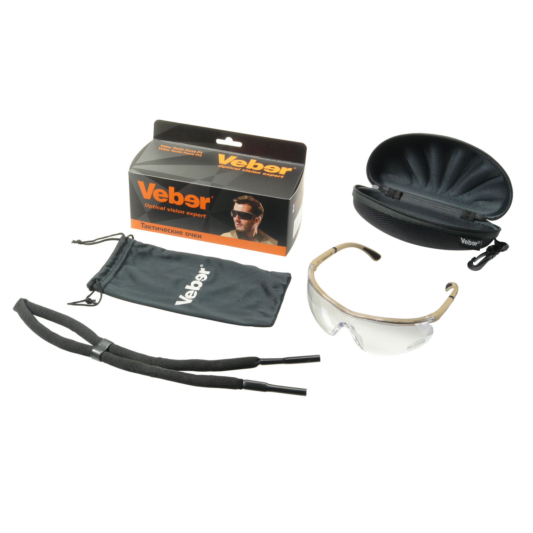 Veber Tactic Force P1 - баллистические стрелковые противоосколочные очки с ударопрочными поликарбонатными линзами. Очки предназначены для защиты органов зрения от ультрафиолета, ветра, пыли, а также попадания крупных частиц во время активного отдыха и занятия экстремальными видами спорта, при стрельбе в тире, на охоте или проведении тактических учебных операций. Подходят для повседневного использования, линзы - бесцветные, цвет оправы – песочный.