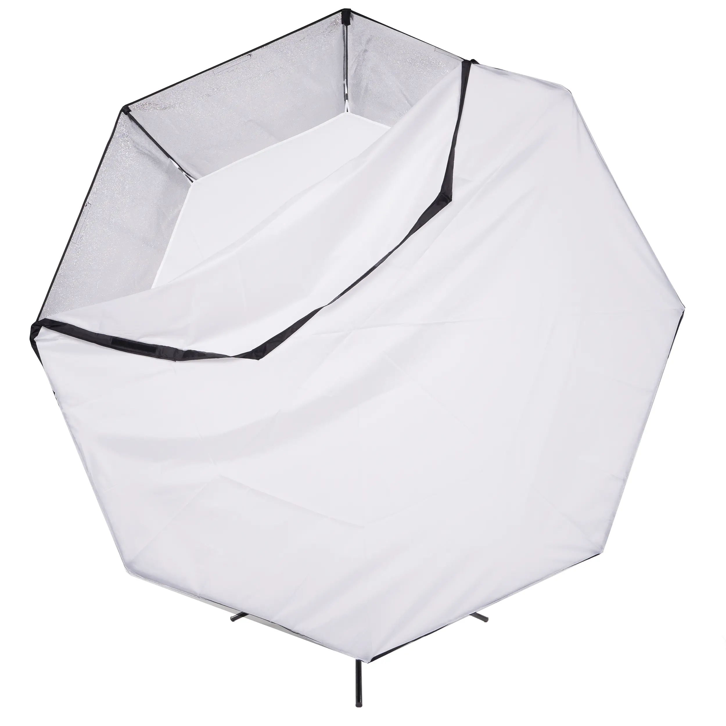 Тент-отражатель софтбокса изготавливается из специальной синтетической ткани с внутренней серебристой светоотражающей поверхностью. Серебристая поверхность обеспечивает равномерное распределение светового потока внутри софтбокса с минимальными потерями на светоотражение.
