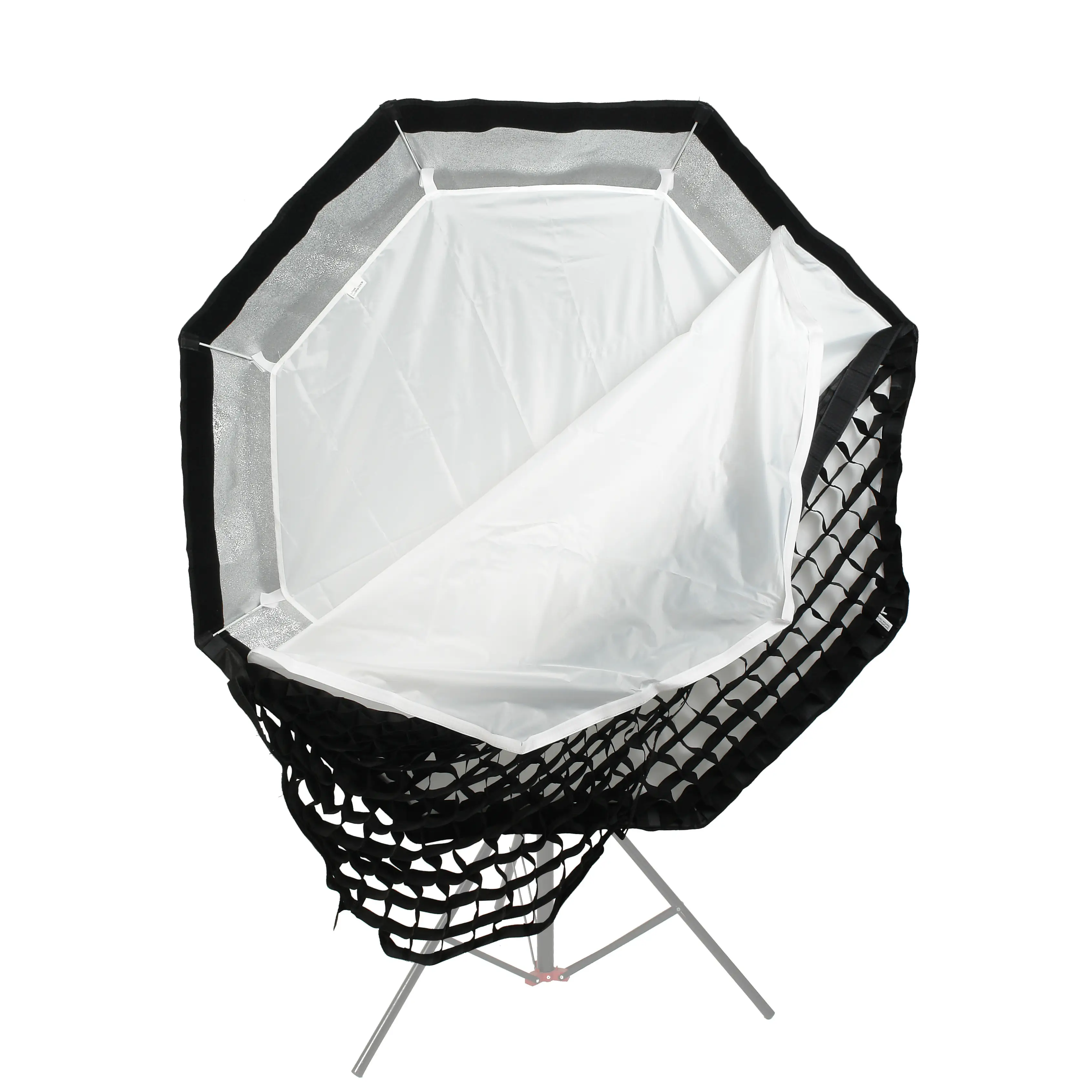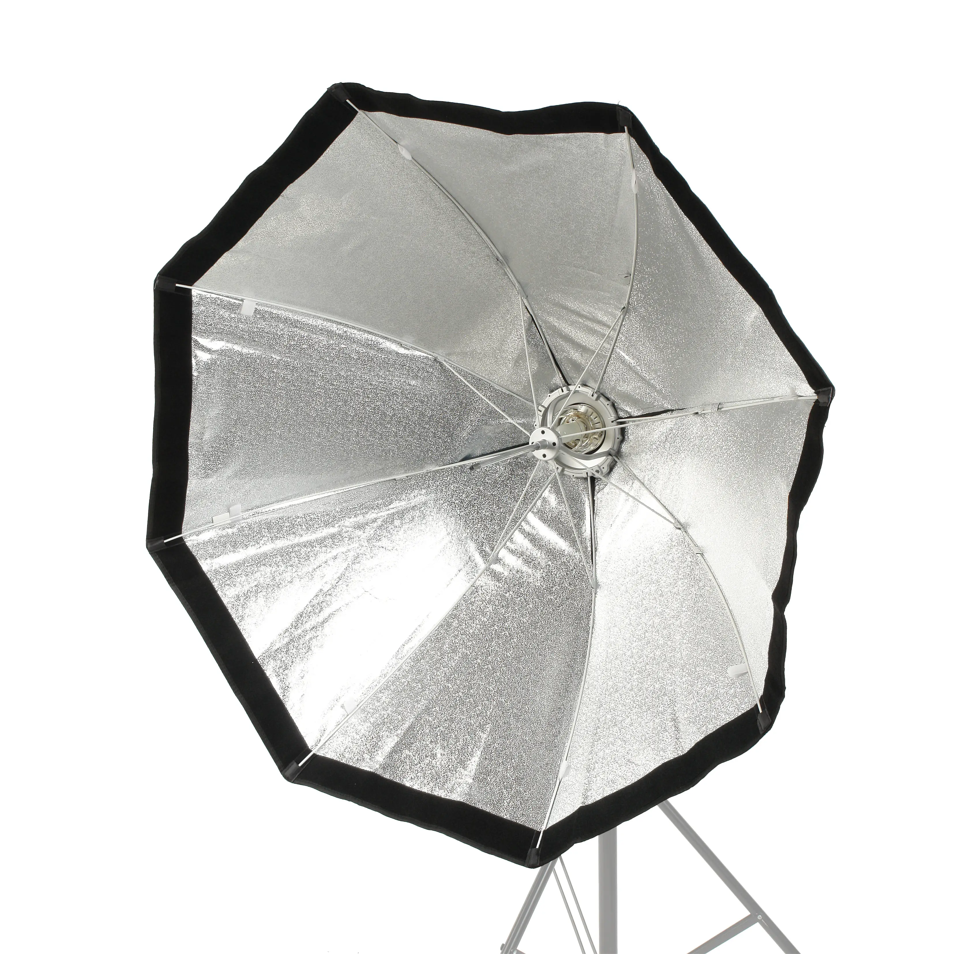 Внутренняя серебристая фактурная поверхность обеспечивает равномерное распределение света внутри октобокса.