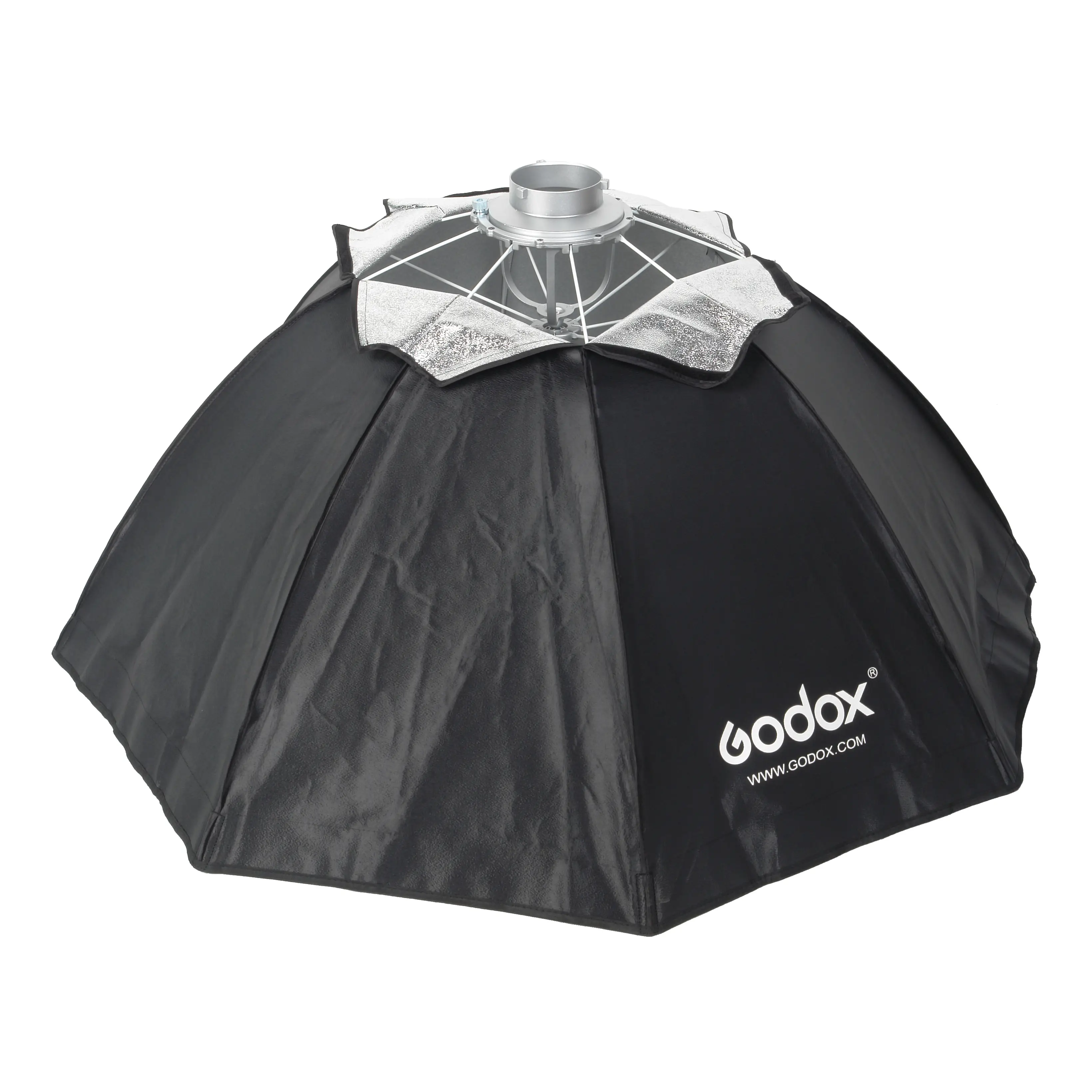 Октобокс Godox SB-UFW120 – быстроскладной 8-секционный софтбокс зонтичного типа диаметром 120 см с тканевыми сотами в комплекте. Октобокс предназначен для использования совместно со студийными вспышками и осветителями с байонетом (кольцо байонета сменное). Подходит для использования не только с источниками света Godox, но и осветителями других производителей.