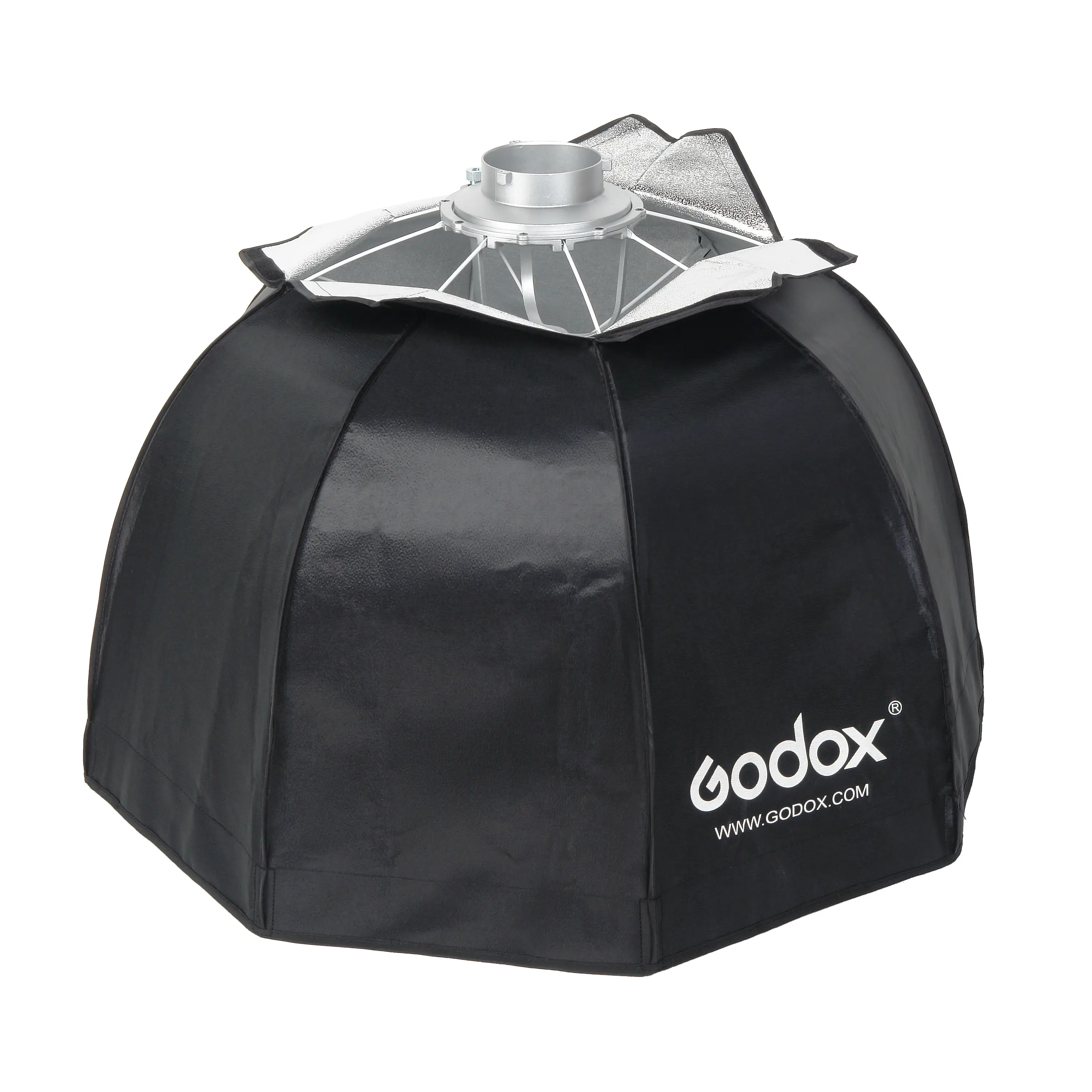 Внутренняя серебристая фактурная поверхность обеспечивает равномерное распределение света внутри октобокса.