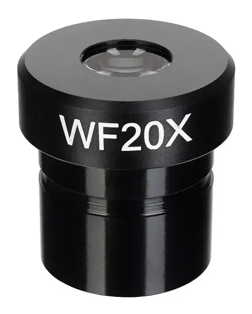 Линзы окуляра выполнены из оптического стекла, поэтому создают четкую картинку по всему полю зрения. Алюминиевый корпус прочный и долговечный. Посадочный диаметр окуляра составляет 23,2 мм, что позволяет использовать его с микроскопами серии Levenhuk MED и аналогами.