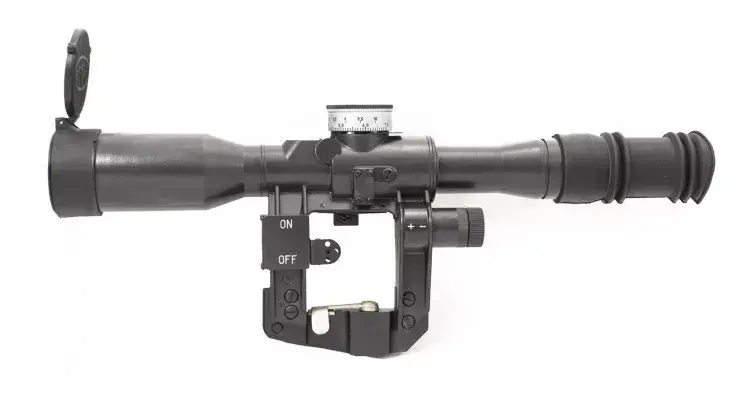 Объектив закрывается откидывающейся крышкой, которая защищает линзы от царапин и пыли. Стационарный наглазник фиксирует при стрельбе положение глаза относительно оптической оси окуляра и отсекает боковую засветку.