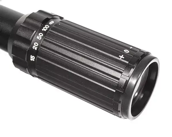 Барабанчики выверки — тактического типа, высокие, без крышечек, с кольцом блокировки от случайного смещения и возможностью сброса на строек на «новый ноль». Поправки вносятся с шагом 7 мм на 100 м.