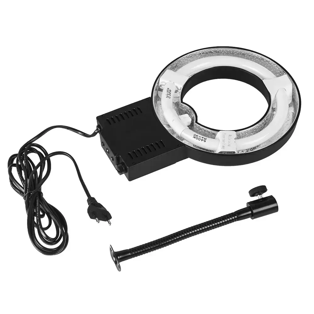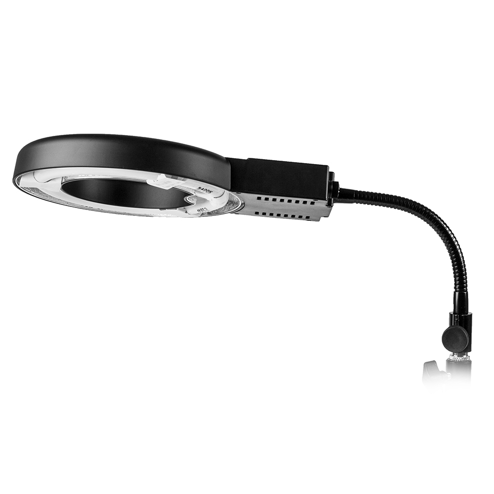 Falcon Eyes FLC-22 люминесцентный (флуоресцентный) кольцевой осветитель, мощность лампы 22 Вт, предназначен для использования при макросъемке и других съемках требующих эффективного постоянного освещения (например, кольцевые рефлексы в глазах при съемке портретов, а также как заполняющий или модулирующий источник света). Кольцевая форма осветителя позволяет расположить его центральную ось на оптической оси объектива, таким образом получить равномерное освещение объекта.