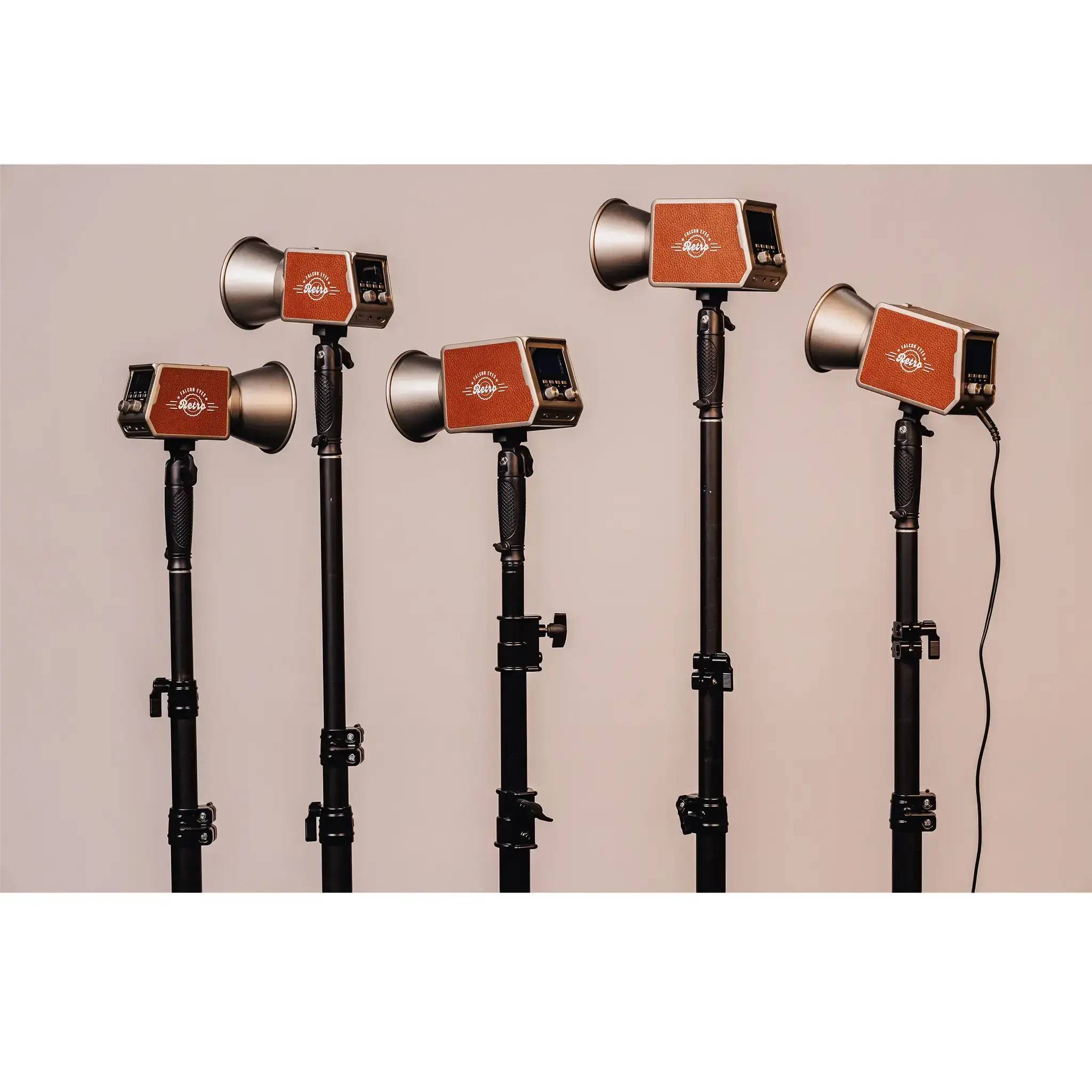 Retro 200B отличается элегантным дизайном с кожаной отделкой, что придает устройству стильный и оригинальный облик. Кроме того, винтажный дизайн осветителя привлекает внимание и позволяет использовать прибор как самостоятельный декоративный элемент кадра, гармонично интегрируясь в концепцию fashion-съемок и арт-проектов.