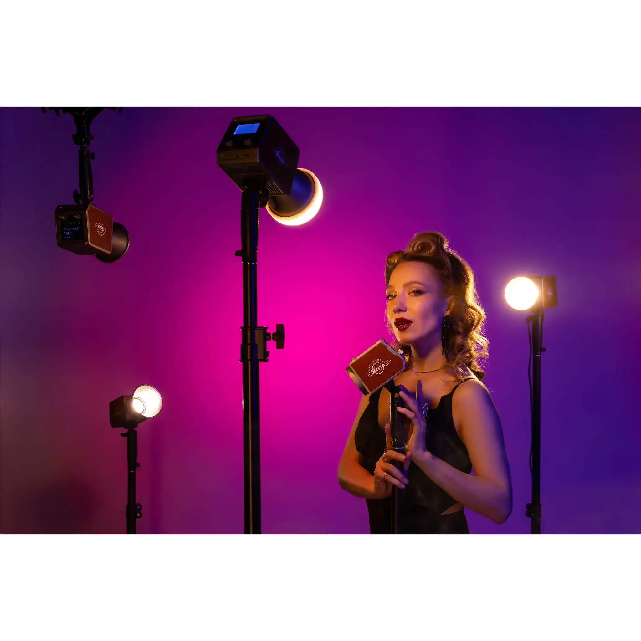 Retro 60R отличается элегантным дизайном с кожаной отделкой, что придает устройству стильный и оригинальный облик. Кроме того, винтажный дизайн осветителя привлекает внимание и позволяет использовать прибор как самостоятельный декоративный элемент кадра, гармонично интегрируясь в концепцию fashion-съемок и арт-проектов.