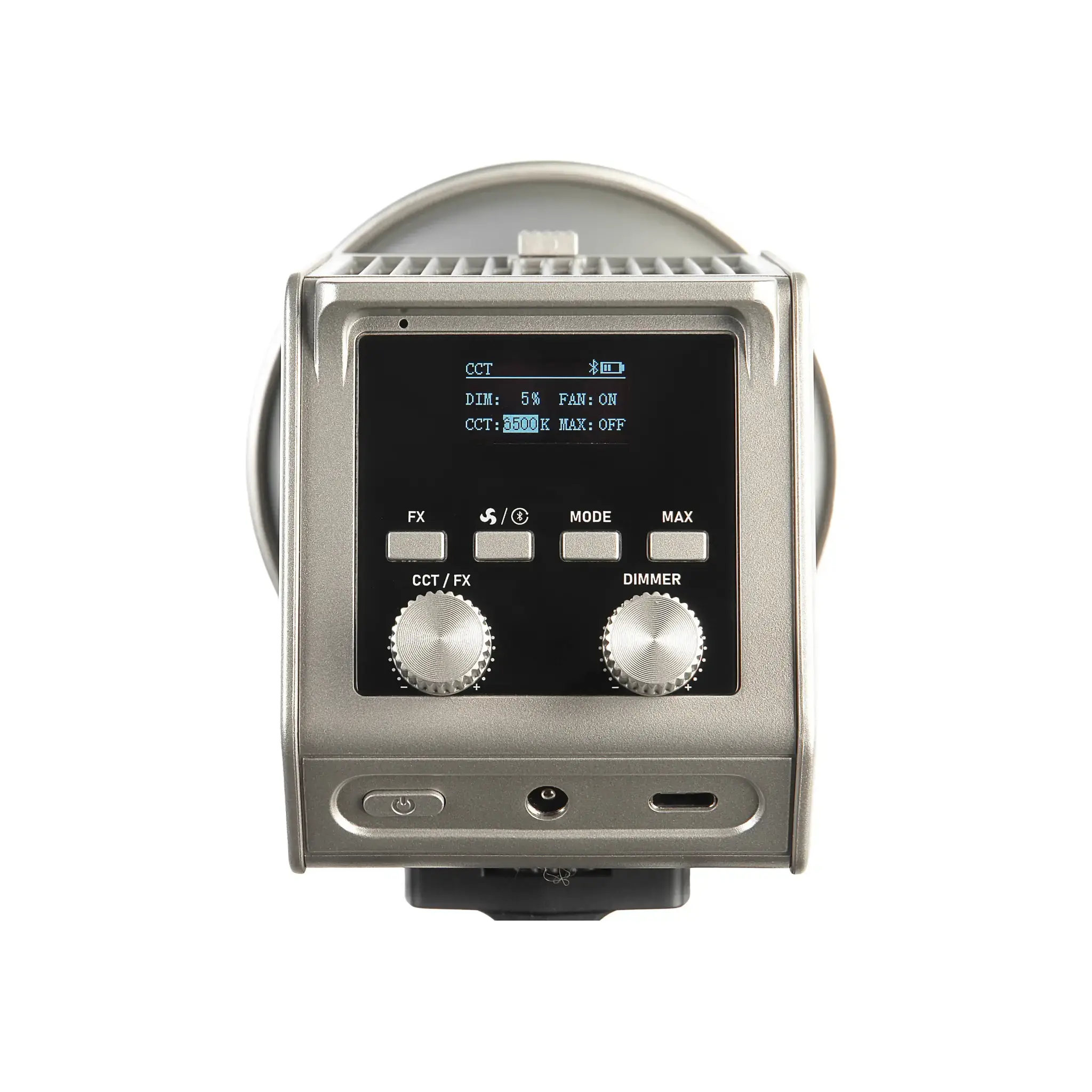 Встроенный аккумулятор емкостью 4500 мАч обеспечивает продолжительную работу устройства: около 70 минут в стандартном режиме и до 40 минут в режиме максимальной мощности (MAX). Осветитель поддерживает быструю зарядку через разъем USB-C (протокол PD3.0), что значительно сокращает время ожидания между сеансами съемки.