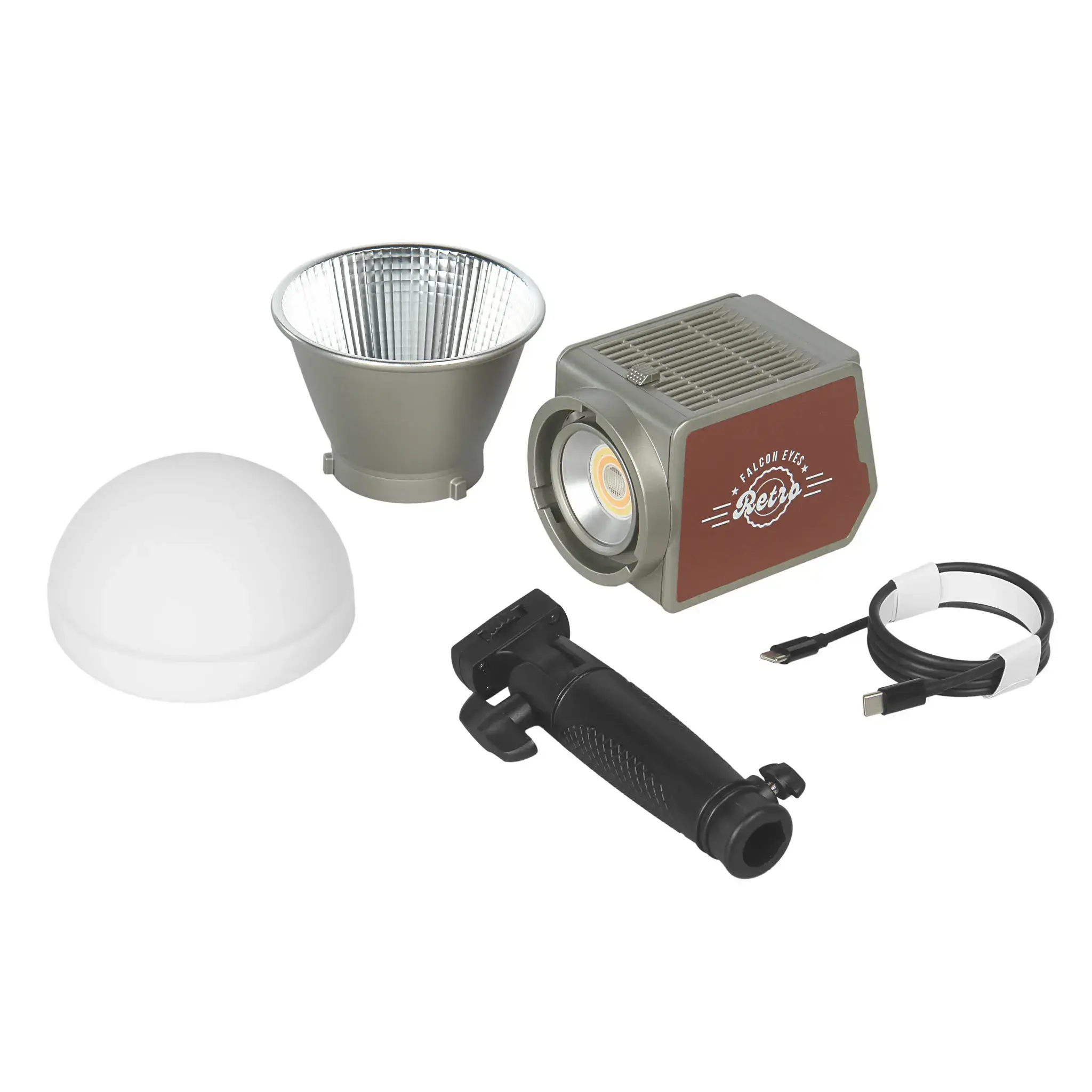 Falcon Eyes Retro 60R — это портативный полноцветный светодиодный осветитель, который сочетает в себе высокую производительность и стильный ретро-дизайн. Этот прибор предназначен для фото- и видеосъемок как в студии, так и в полевых условиях благодаря возможности автономного питания от аккумулятора. Осветитель в стиле ретро предлагает гибкое управление светом, разные сценарии работы и простоту эксплуатации.