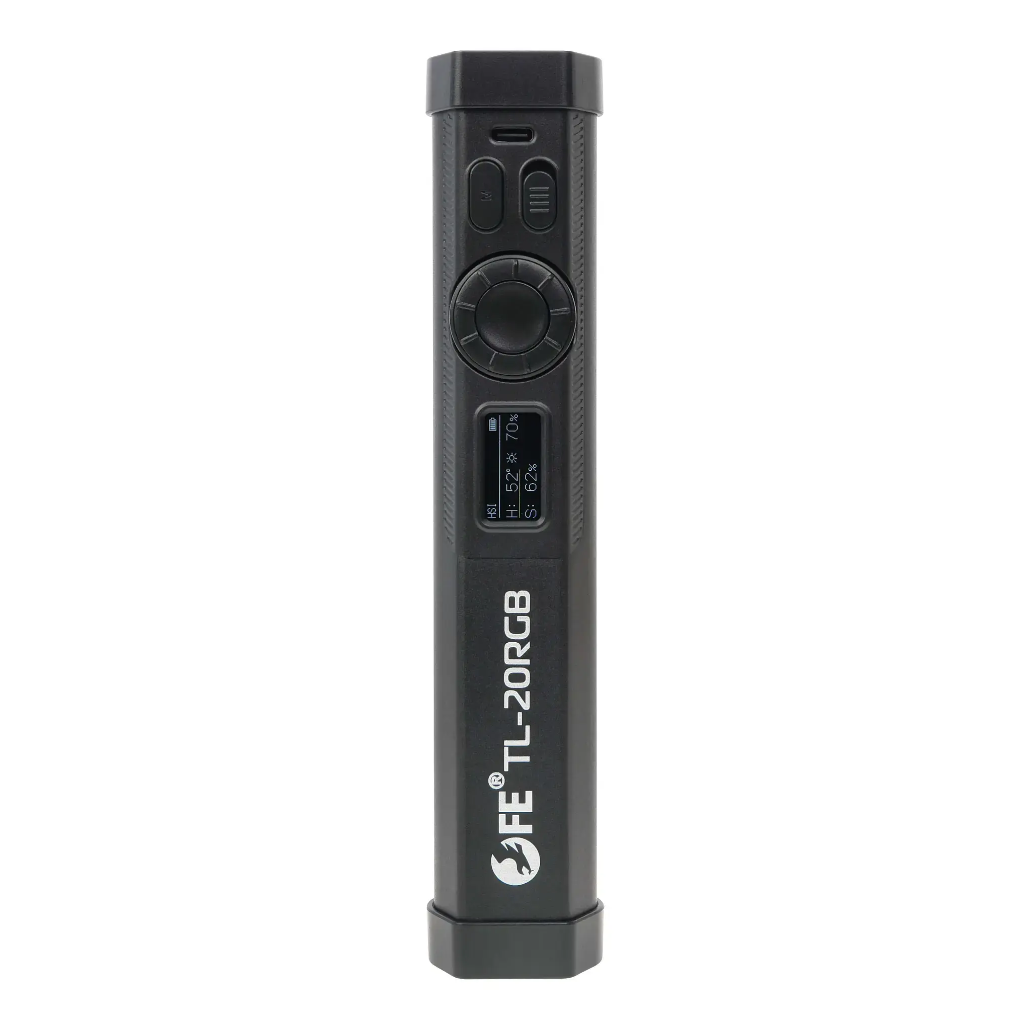 Falcon Eyes TL-20RGB имеют простое, интуитивно-понятное управление. Помимо кнопки включения питания на корпусе находятся кнопка выбора режима и диск настройки с кнопкой выбора параметра посередине. Т.е. с помощью всего четырех клавиш можно быстро включить и настроить любой доступный режим освещения. Все установленные параметры будут отображены на TFT-дисплее.