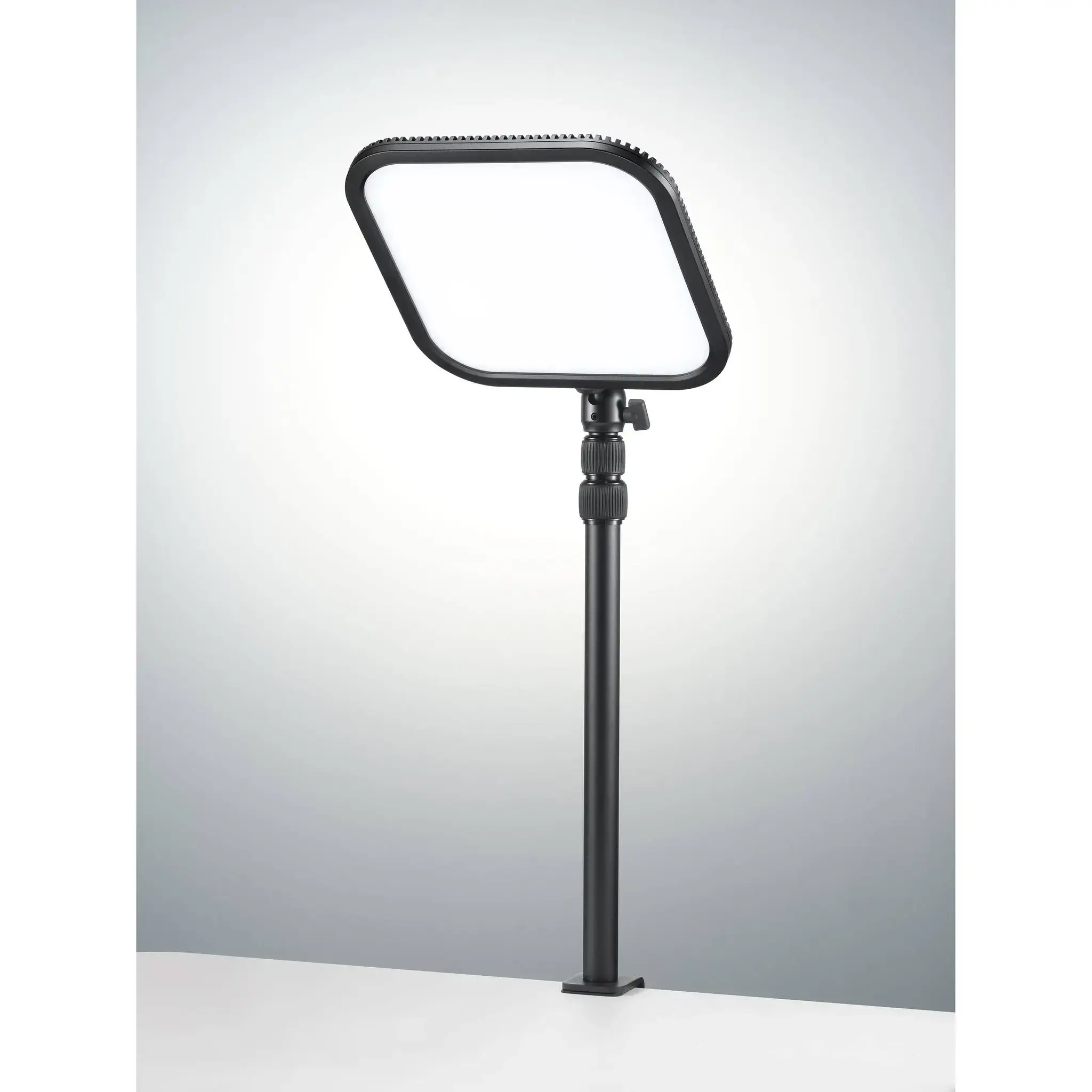 В отличие от громоздких осветителей с софтбоксами, тонкая световая панель размером 23х23х4см способна разместится на игровом столе или любой другой плоской поверхности, которую можно зажать струбциной, например, книжной полке.