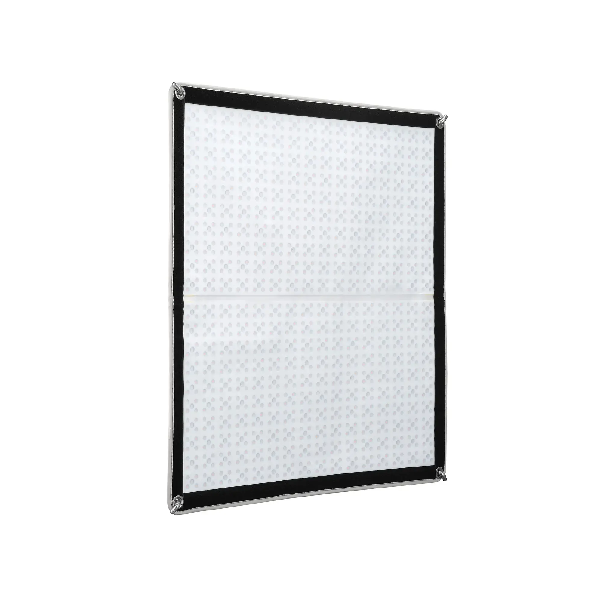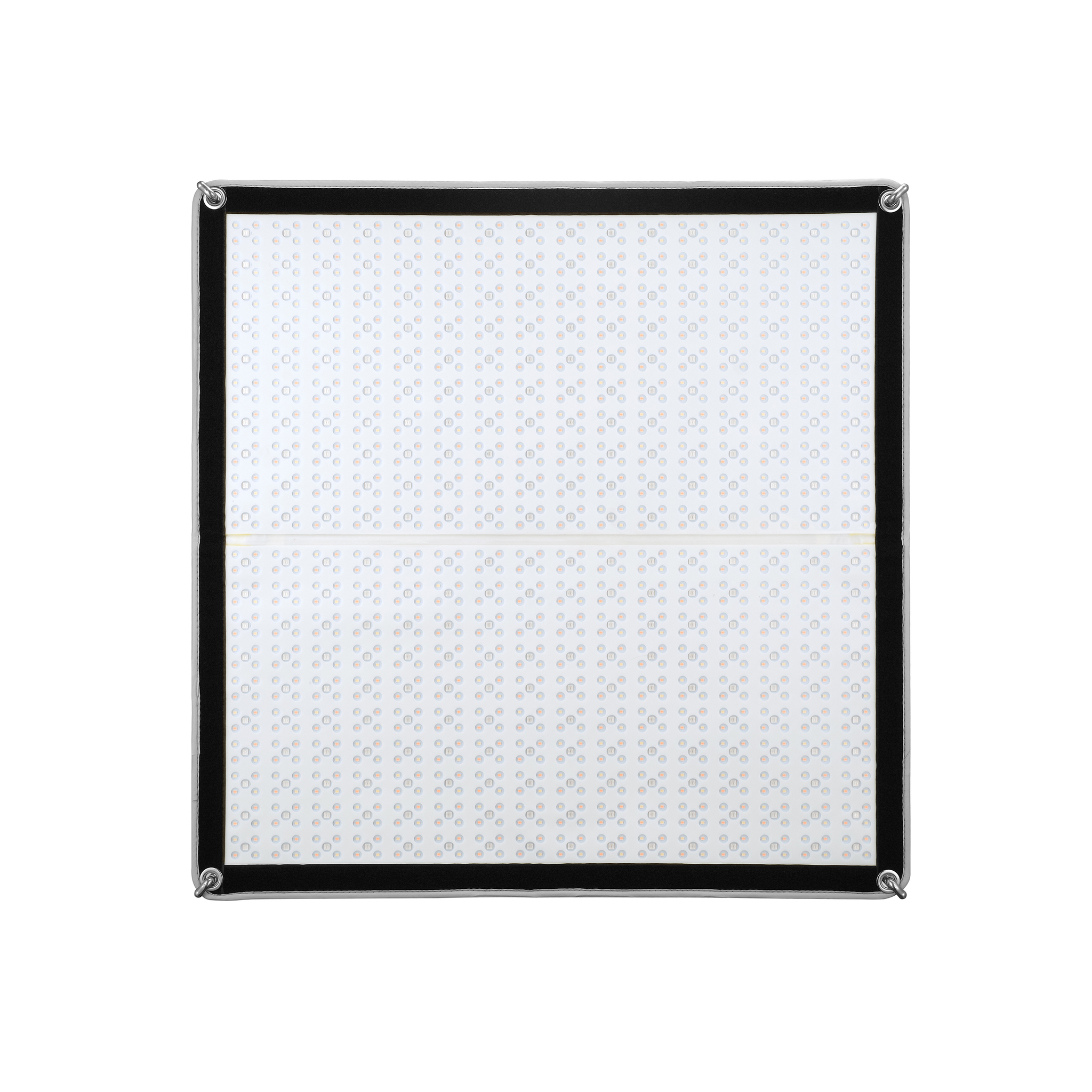 Осветитель представляет собой тонкую гибкую панель размером 60х60 см, которая крепится на металлический X-кронштейн или натягивается с помощью люверсов и липучек, благодаря чему осветитель можно размещать в ограниченном пространстве, на углах, выступах и иных неровных поверхностях.