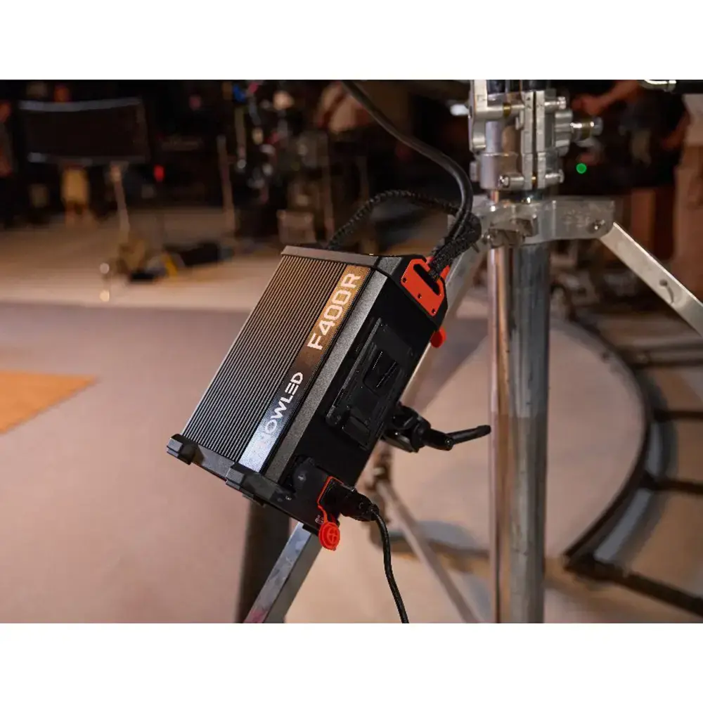 Мощность F400R составляет 400 Вт, при которых прибор выдает освещенность до 14400 люкс на 1 м. Яркость света регулируется от 0,0% до 100% с шагом в 0,1%, позволяя настраивать освещение максимально точно.