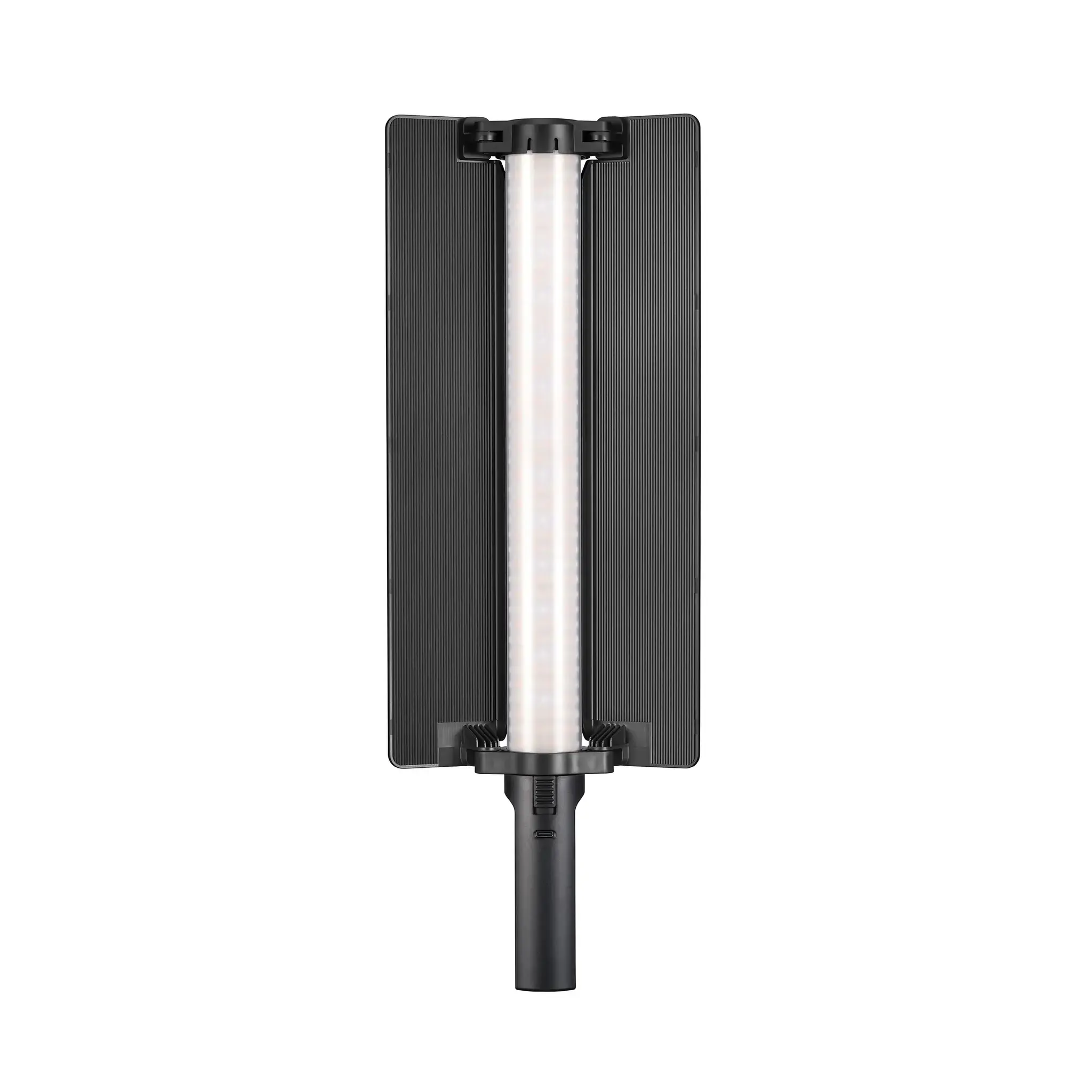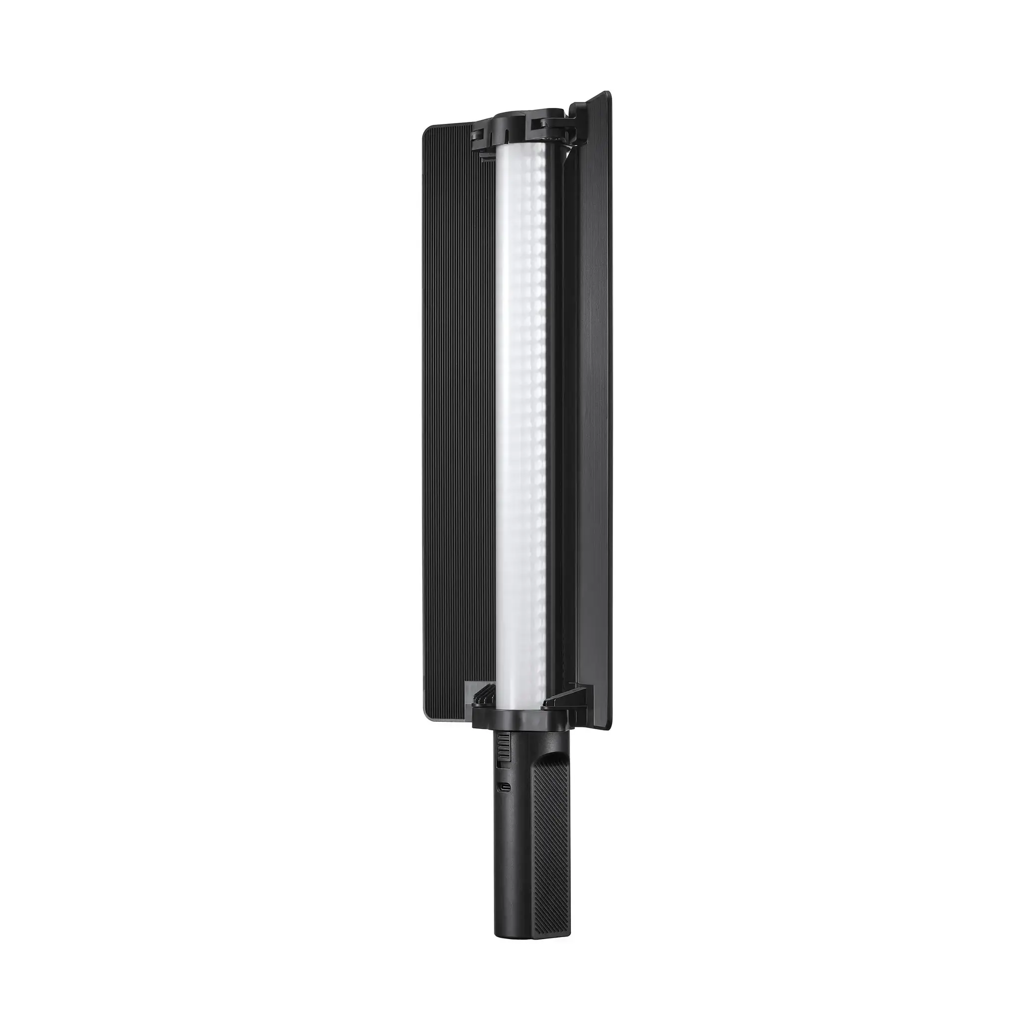 Трубчатый осветитель со встроенным аккумулятором и съемными шторками предназначен для контент-мейкеров, которым необходим мощный, но легкий источник света для съемки в помещении или на улице.