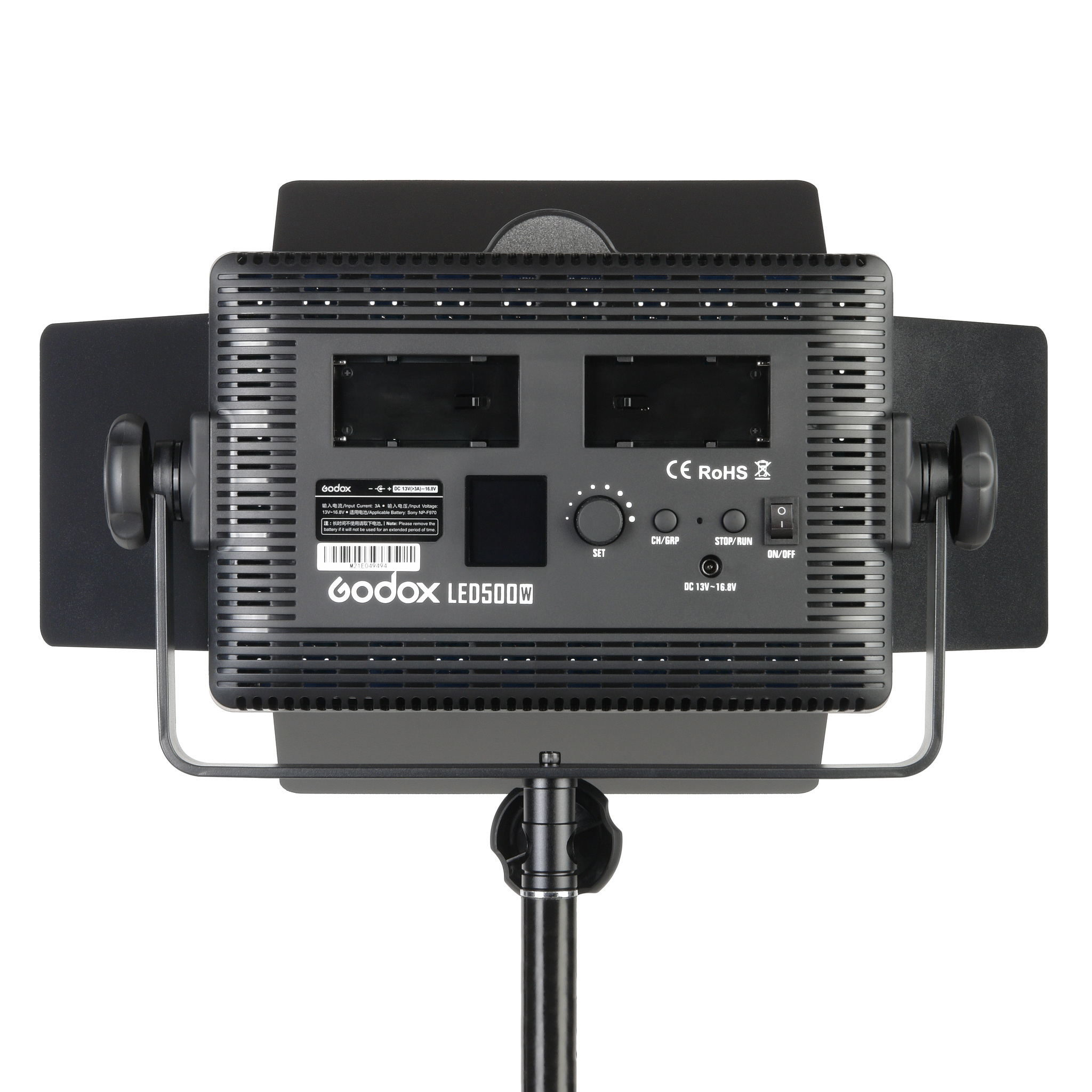 Студийный осветитель Godox LED500W разработан как портативный и универсальный источник постоянного света, работает от аккумуляторной батареи и от сети переменного тока.