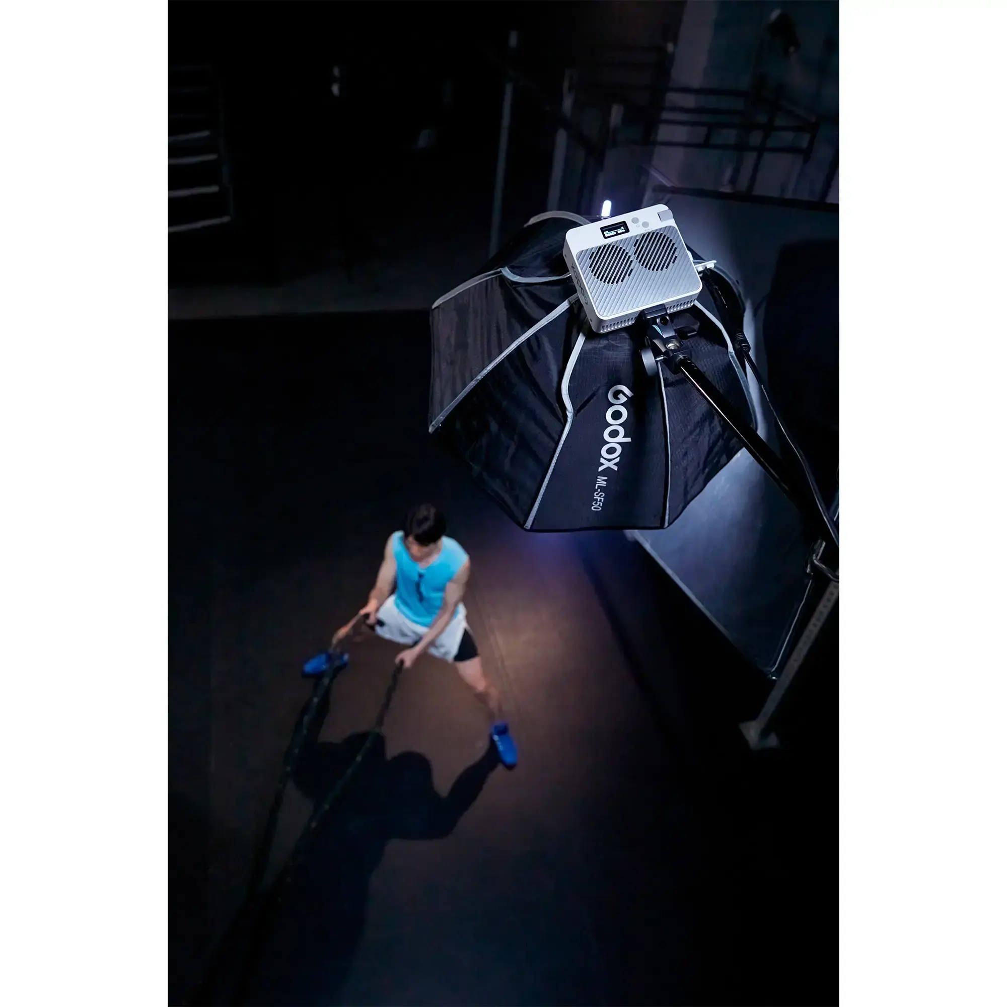 Осветитель оснащен байонетом Godox для установки дополнительного оборудования и аксессуаров, например, октобокса Godox ML-SF50, сферического софтбокса ML-CS30, проекционных насадок MLP. С их помощью можно создавать узконаправленный или рассеянный свет, формировать уникальный светотеневой рисунок, проецировать световые узоры и многое другое.