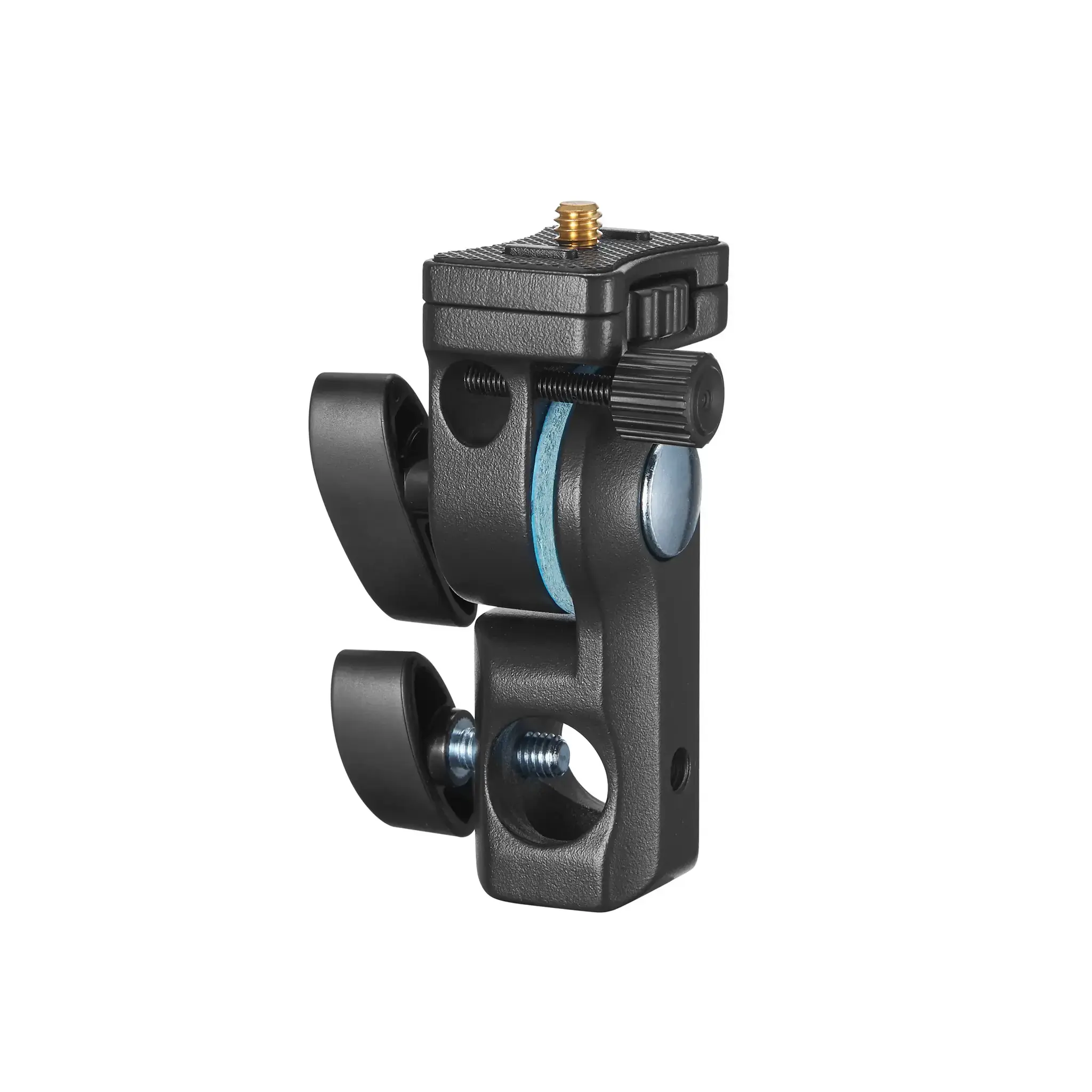 Адаптер AD-E2 крепится на корпусе осветителя винтом 1/4" и имеет в основании отверстие для установки на стандартный шпигот 5/8" осветительной стойки или другого держателя. В основании адаптера предусмотрено гнездо для фотозонта. Адаптер предназначен для удобного удержания прибора в руке или для установки на стойку.