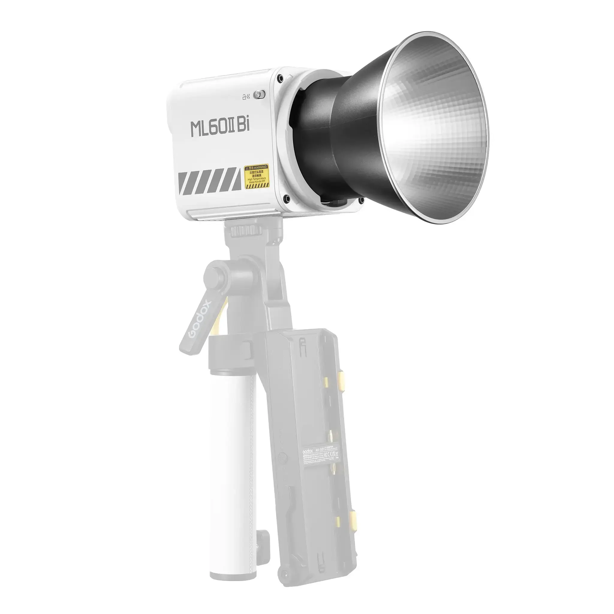 ML60II Bi совместим с различными модификаторами с байонетом Godox, которые придают световому пятну нужную форму и размер. Рефлектор ?11 см с «зеркальной» поверхностью и байонетом Godox, входящий в комплект, делает световое пятно равномерным и с довольно резкой границей.