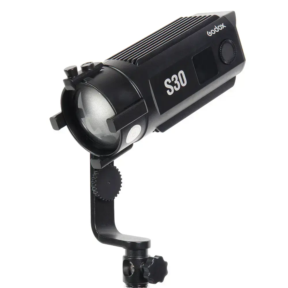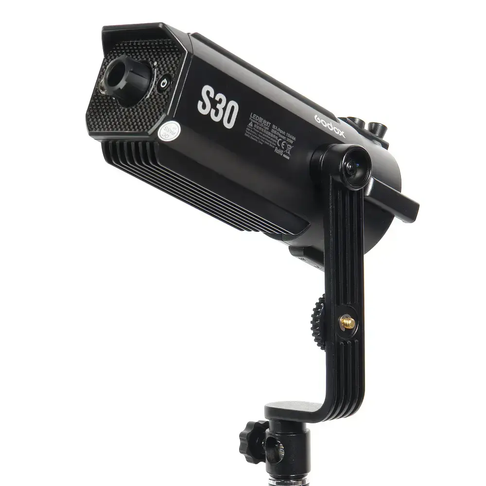 Осветитель светодиодный Godox S30 – это легкий, фокусируемый источник света для точечной подсветки с углом раскрытия светового потока 6…55? и мощностью до 30 Вт. Осветитель разработан для фотографов и видеографов, профессионально занимающихся предметной, свадебной, рекламной съемкой и использующих креативные приемы в освещении. Для реализации творческих замыслов специально для S30 разработан широкий ассортимент светоформирующих и светомодифицирующих аксессуаров.