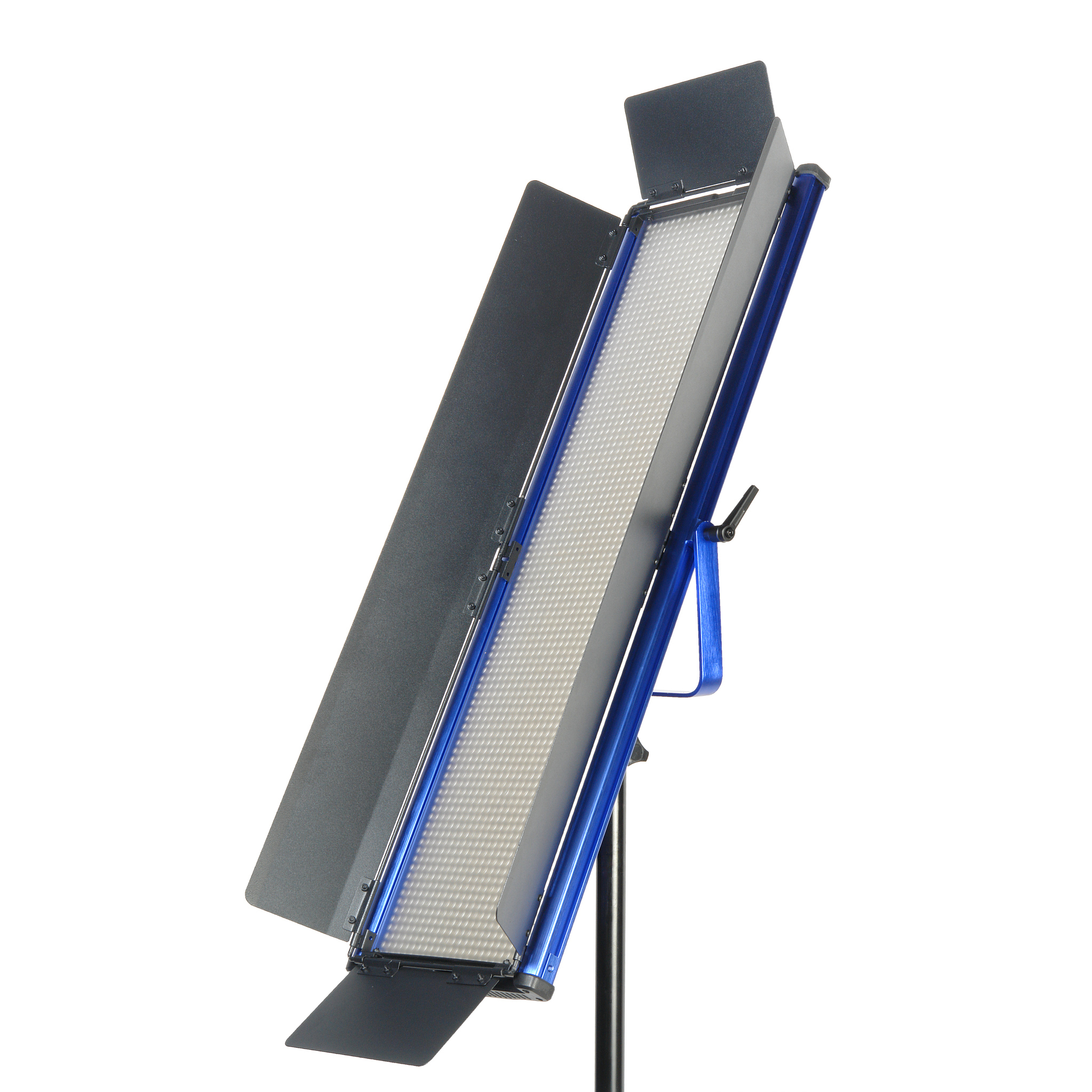 Прочность конструкции обеспечивает корпус из алюминиевого сплава. Благодаря современному дизайну легкие синие панели не затеряются среди другого оборудования на площадке. С помощью надежного кронштейна-лиры, который можно перемещать вдоль корпуса, осветитель устанавливается на стойки, краны, подвесные системы с посадочным местом 5/8”. В комплект входят металлические шторки со стальными крепежными элементами.