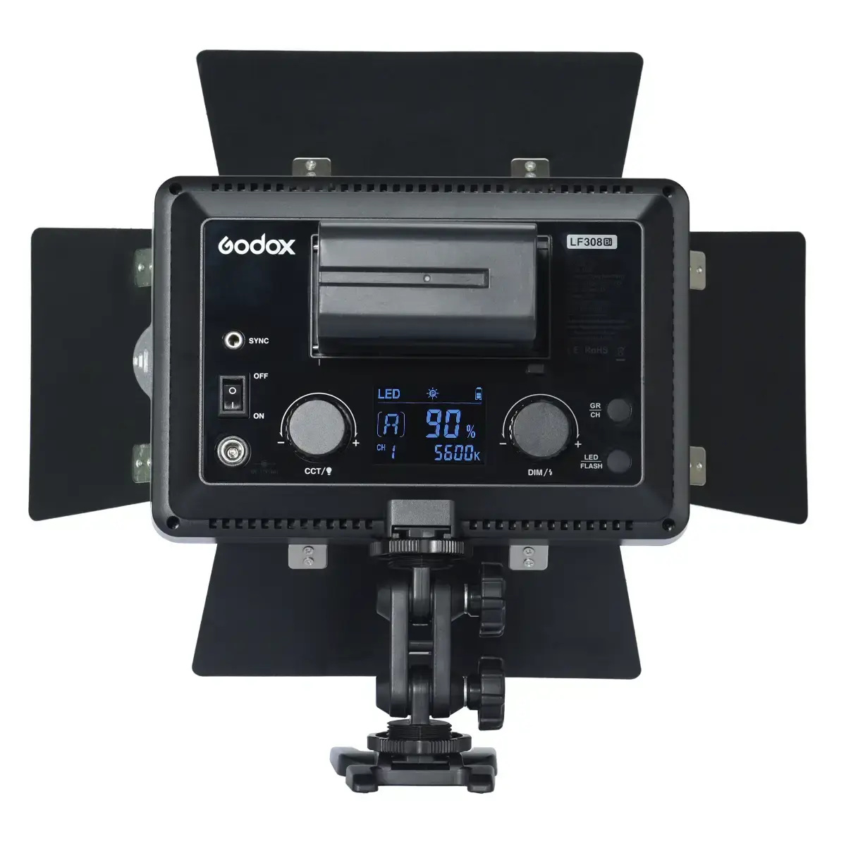 Godox LF308BI — накамерный источник постоянного света с функцией вспышки, оснащен 308 светодиодными лампами (154 теплого + 154 холодного белого света) с плавно регулируемой яркостью светового потока от 0 до 100% и цветовой температурой 3300–5600 К. Осветитель со сбалансированным световым поток с высоким индексом цветопередачи CRI >95 может использоваться во время фото- и видеосъемки как в студии, так и за ее пределами.
