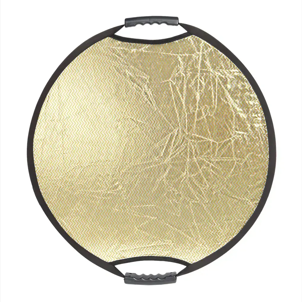 Односторонний круглый отражатель, золотистые и серебристые полоски. Диаметр 56 см, используется в предметной и портретной съемке, а также для подсветки отдельных участков кадра.