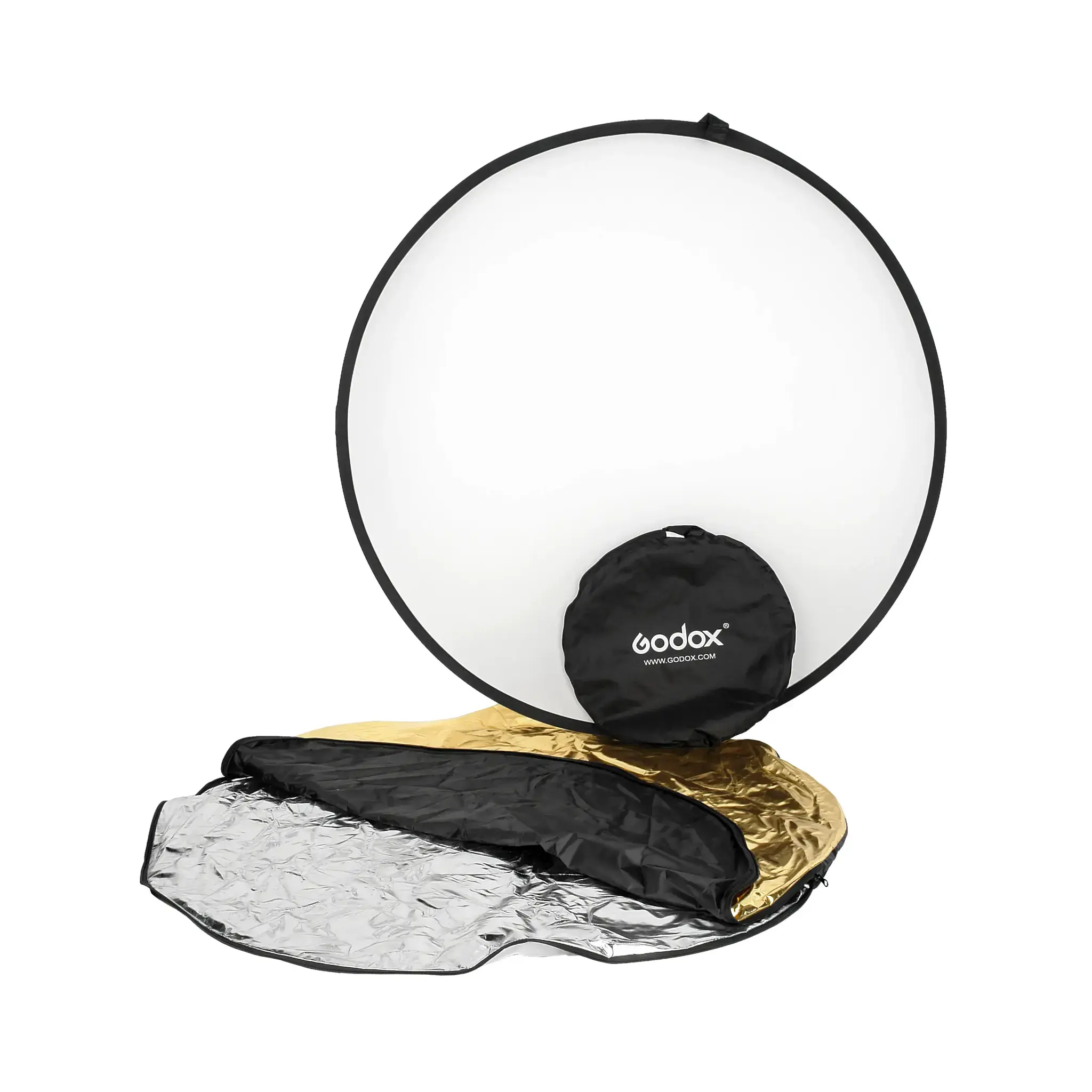 Конструкция отражателя Godox RFT-05 состоит из пружинного стального обруча с натянутой на него полупрозрачной рассеивающей тканью и двух чехлов на молнии со светоформирующими поверхностями. Отражатели легки и удобны в сборке, устойчивы к износу. Рабочий диаметр 110 см.