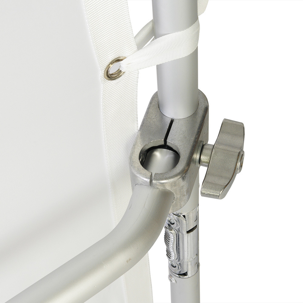 Чехол из просветного белого материала или чехол с четырьмя разными отражающими поверхностями натягиваются на собранную раму. Чехлы прошиты по периметру тесьмой и имеют отверстия для установки рукоятки-растяжки. Для установки отражателя на стенд или другой держатель, на С-образной рукоятке расположен установочный палец диаметром 17 мм.