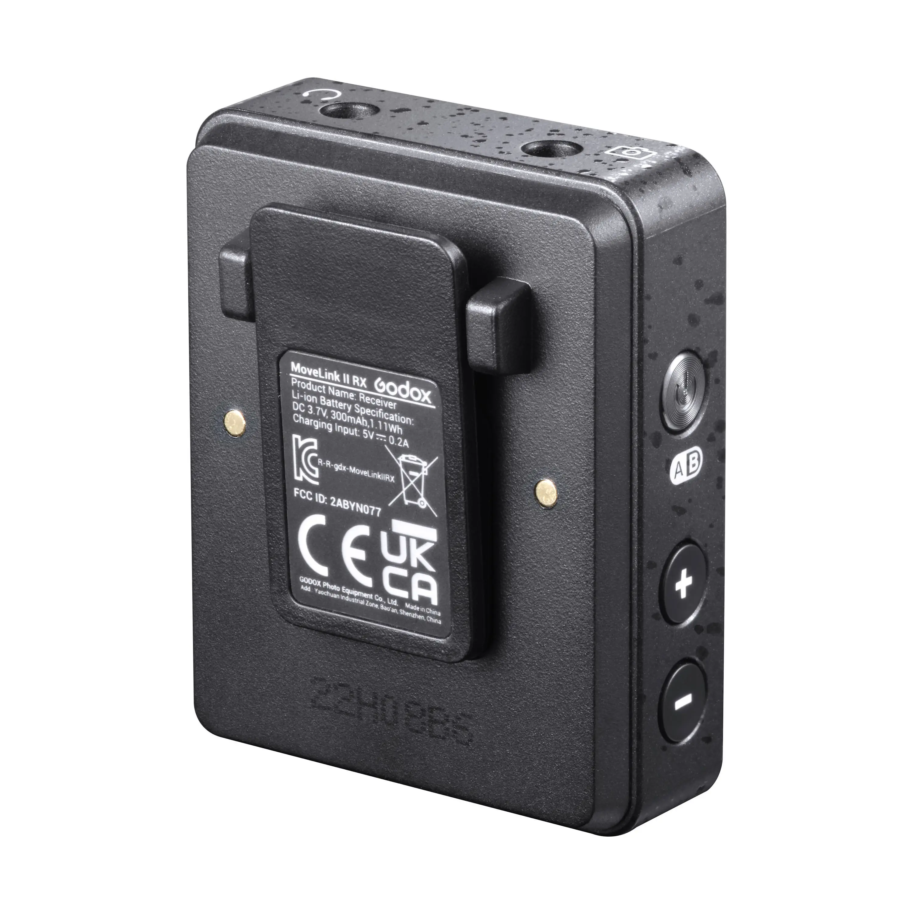 Двухканальный приемник-ресивер Godox MoveLink II RX может принимать сигнал в режиме моно или стерео с одного или двух передатчиков.
