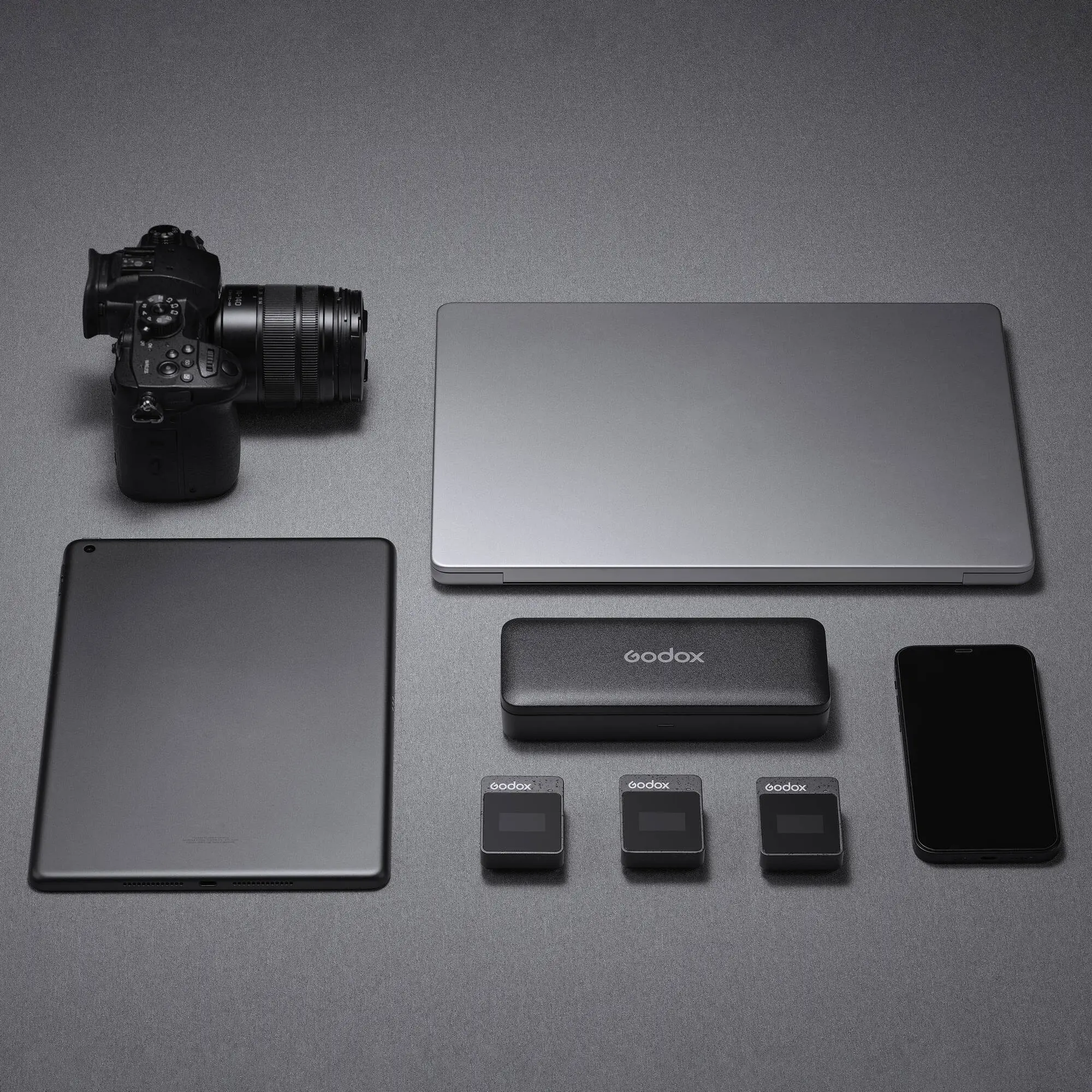 Простая в использовании система не требует профессиональных навыков и включает в себя два передающих трансмиттера Godox MoveLink II TX со встроенным микрофоном, один принимающий ресивер Godox MoveLink II RX и два всенаправленных петличных микрофона с кабелем 1.2 метра в комплекте, а также зарядный кейс Godox MoveLink II-C3.