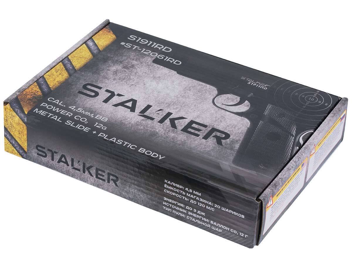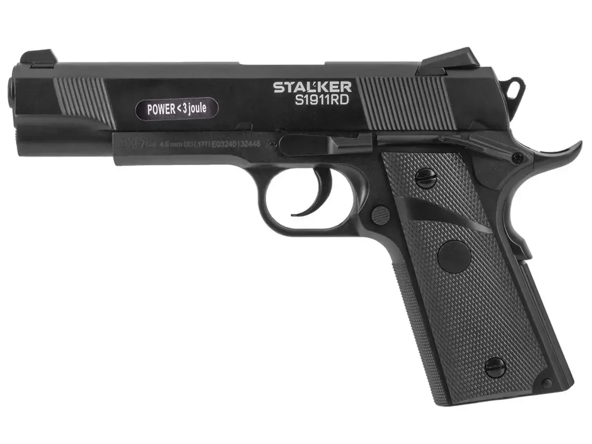 Пневматический пистолет Stalker S1911RD, входящий в серию PRIME, создан на основе легендарного американского пистолета Colt M1911. Это полноразмерный пистолет, своим внешним видом похожий на боевой прототип. Имеет дульную энергию менее 3 Джоулей, поэтому не является оружием, что позволяет приобретать его без каких-либо лицензий и разрешений.