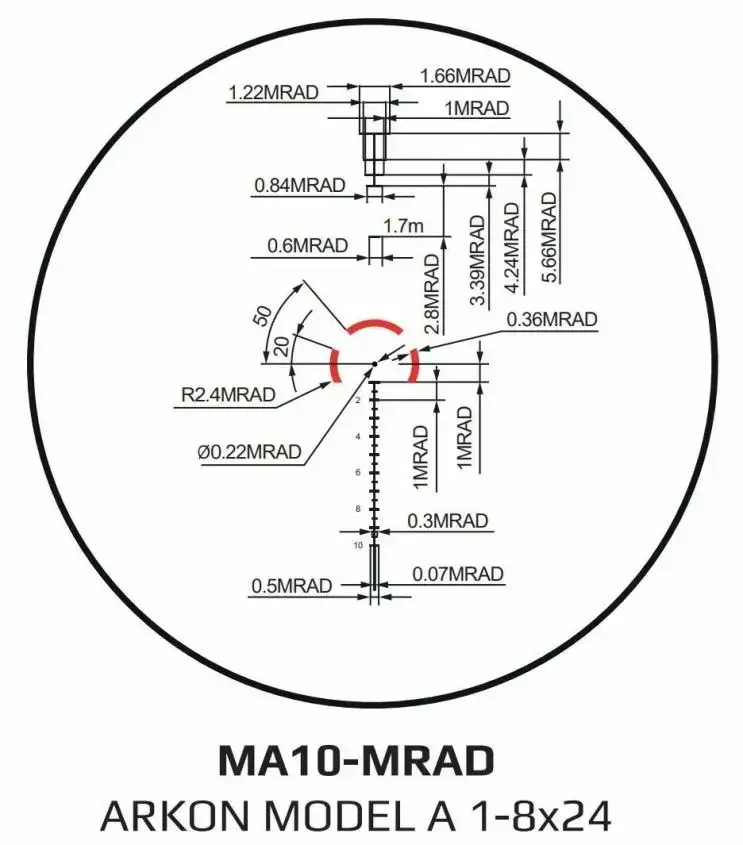 | Прицельная сетка | Баллистическая MA10E-MRAD |