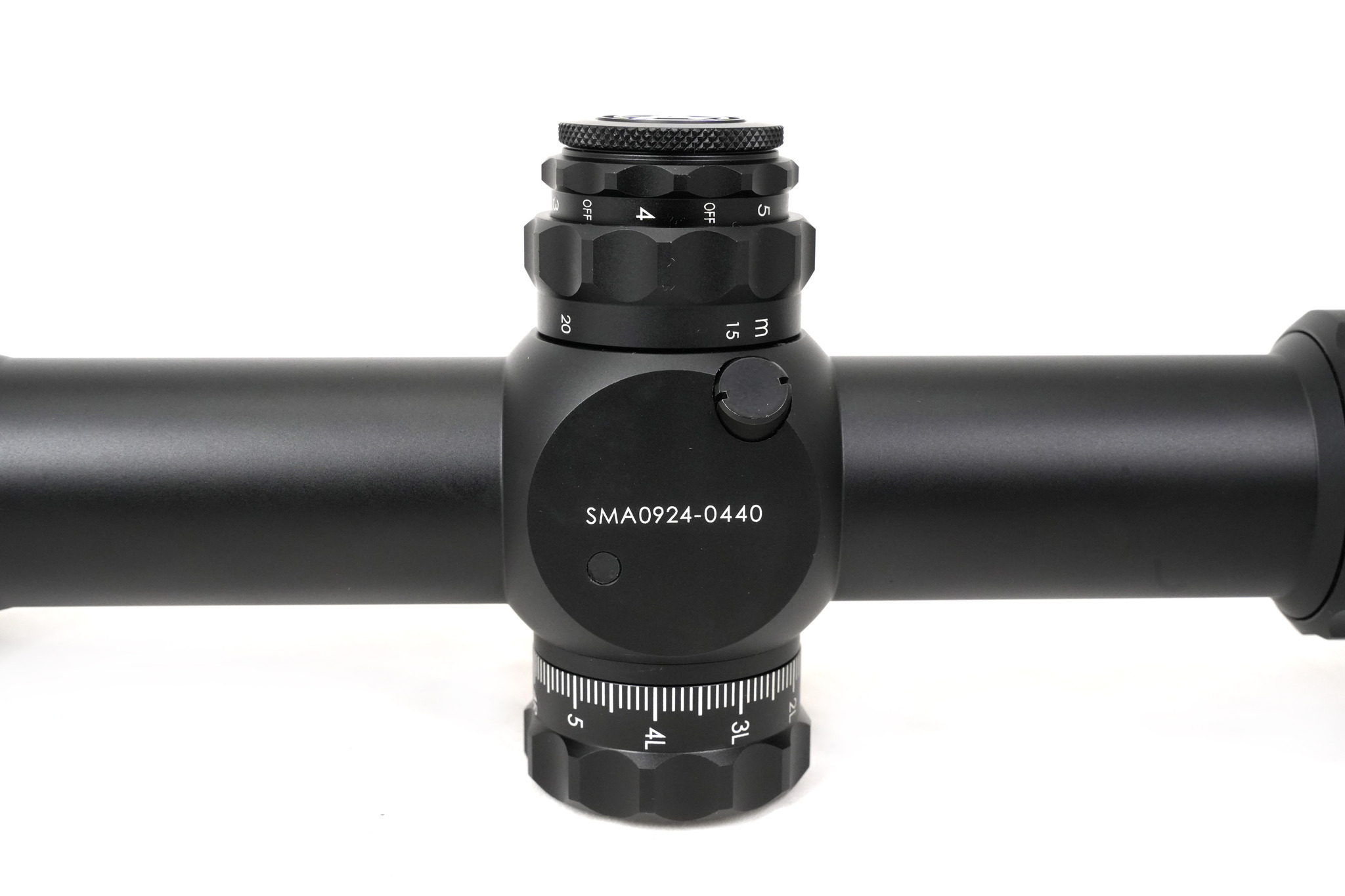 Баллистическая прицельная сетка выгравирована на стекле и расположена в первой фокальной плоскости FFP. Все угловые размеры между элементами остаются постоянными, независимо от увеличения. Стрелок может вести огонь выносом, определять дистанцию по габариту цели и скорость ее движения.