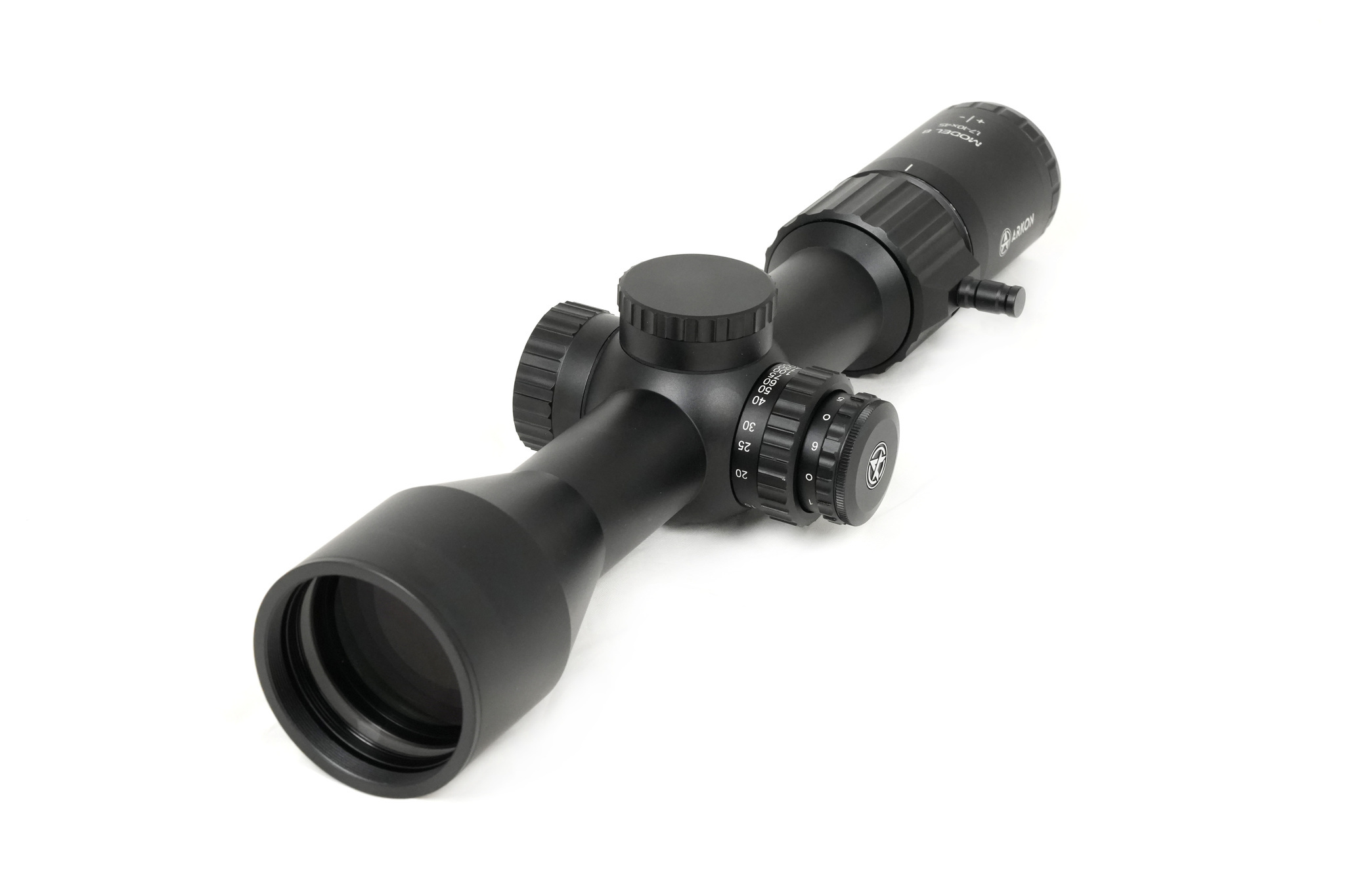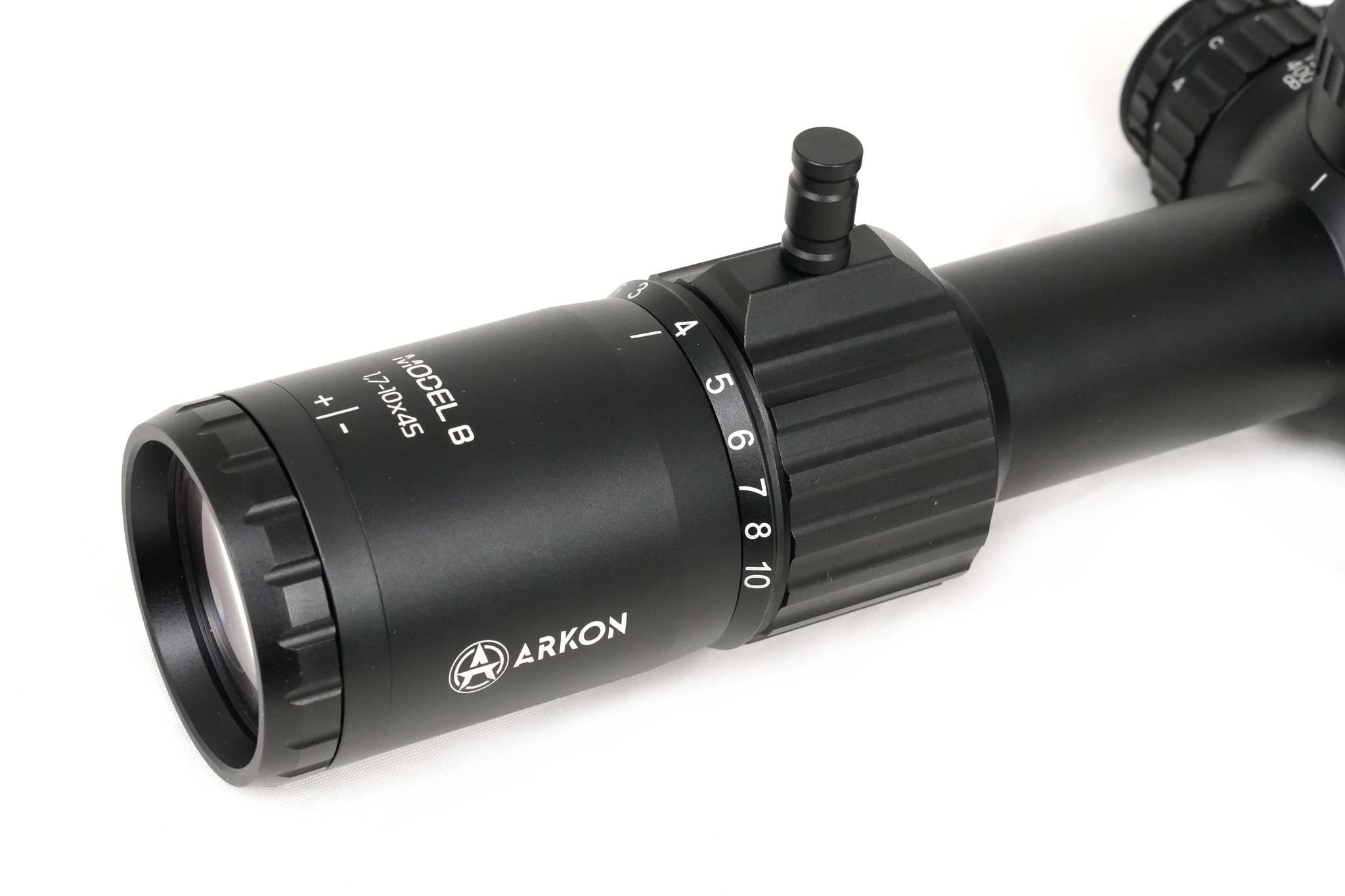 Прицельная сетка прицела Arkon Model B 1,7-10x45 расположена во второй фокальной плоскости, что сохраняет ее постоянный размер при изменении увеличения. Сетка выгравирована непосредственно на стекле, это гарантирует четкость изображения и долговечность. Многоуровневая подсветка позволяет легко приспособиться к различным уровням внешнего освещения, обеспечивая высокую точность прицеливания, а также отличную видимость на темном фоне мишеней.