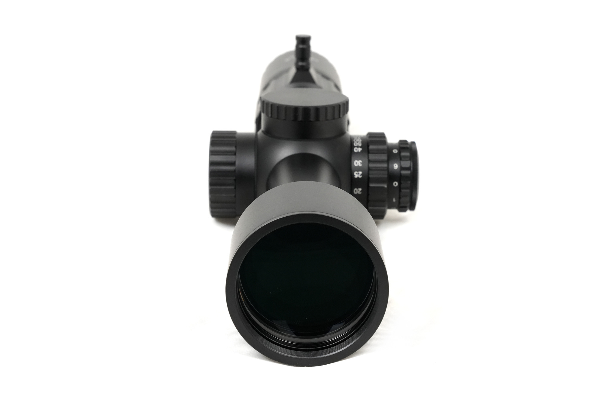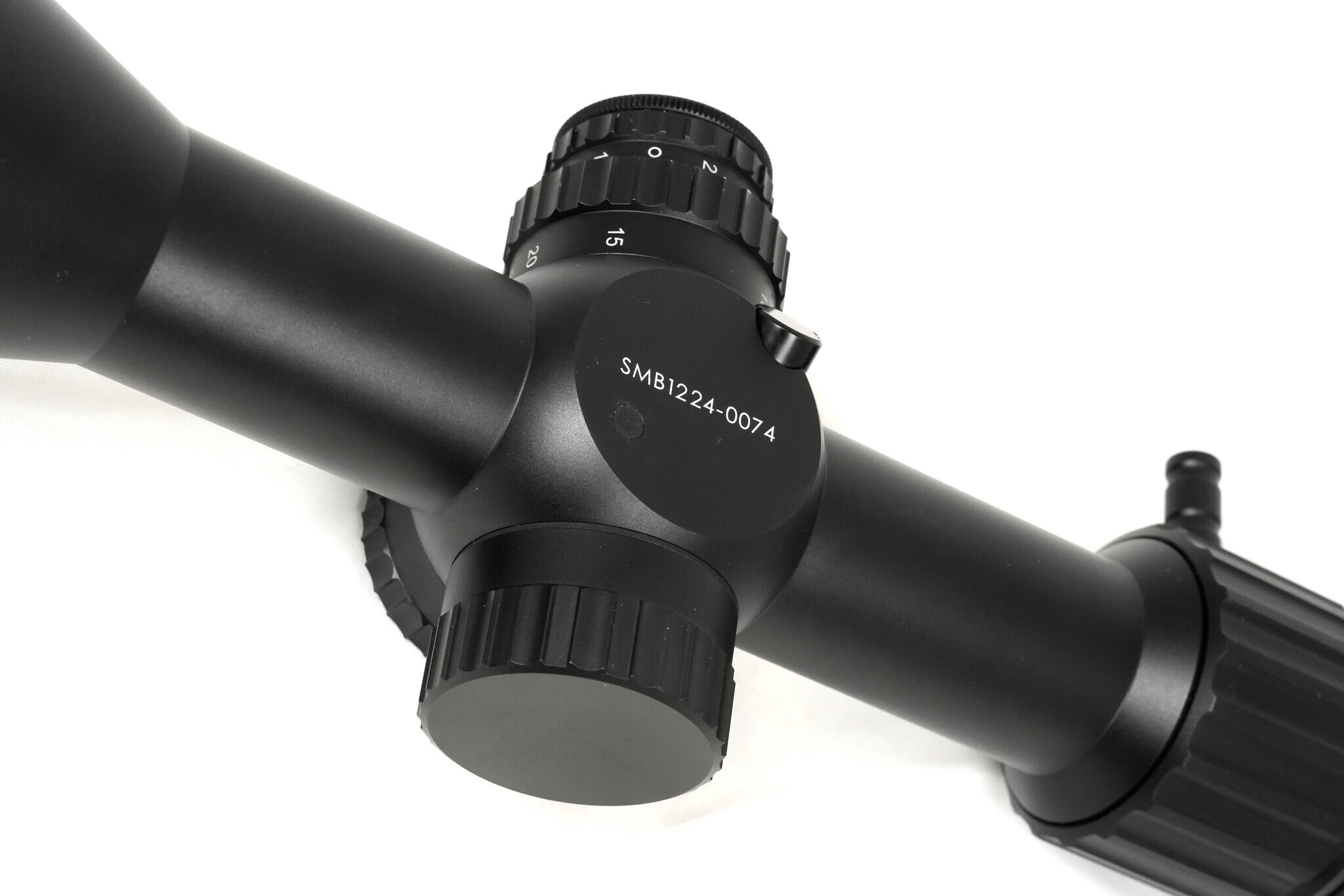 Прицел оснащен закрытыми барабанами ввода поправок с шагом выверки 0,1 MRAD. Запас хода на дальность и силу ветра составляет по 29,4 MIL. Отстройка от параллакса выполняется при помощи бокового барабана от 10 ярдов до бесконечности.