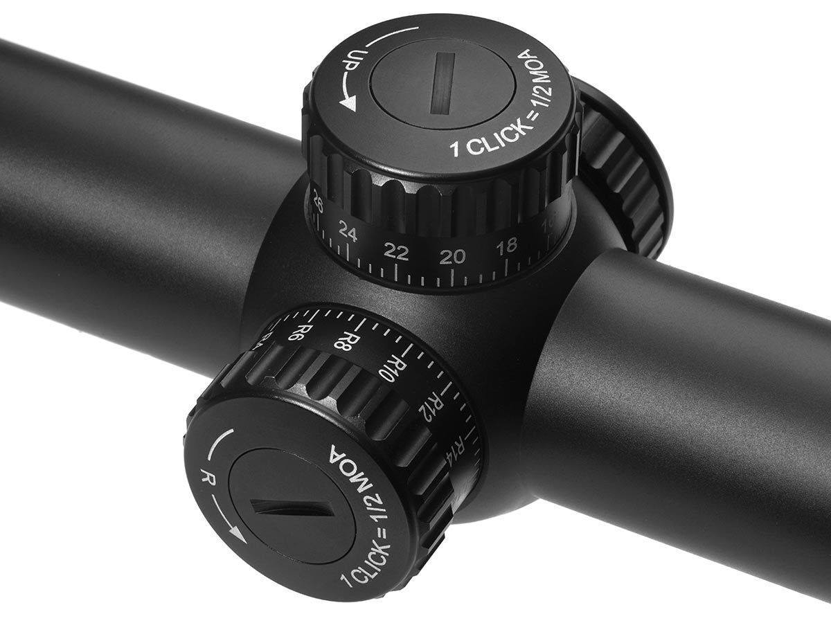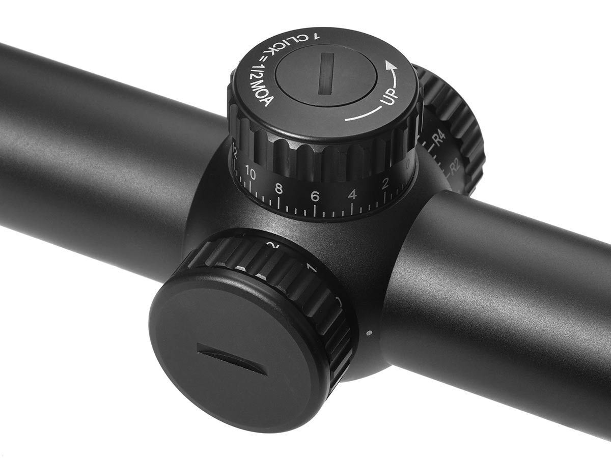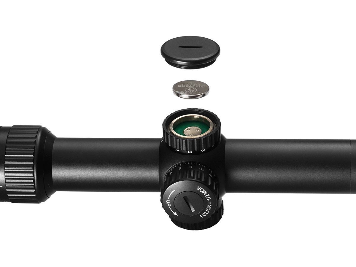 Барабанчики ввода поправок высокие и открытые. Блок подсветки расположен в средней части прицела и работает от батарейки типа CR2032. Подсветка имеет 11 уровней, что позволяет настроить её под любые условия. Подсвечивается центральная точка и круг.