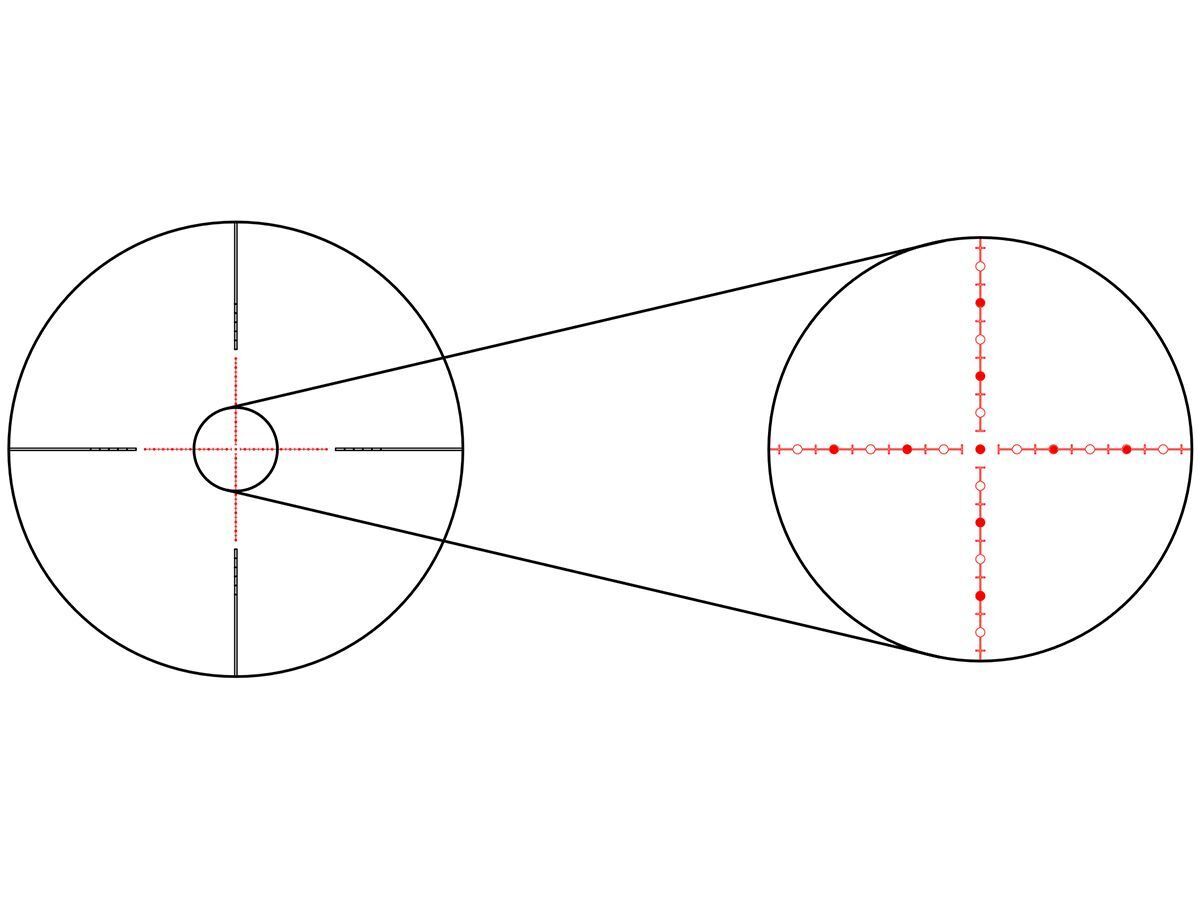Прицельная сетка 31 (Half MD), расположенная во второй фокальной плоскости (SFP), с увеличением кратности остаётся неизменно тонкой. При этом угловые размеры сетки пропорционально изменяются. Отстройка параллакса осуществляется боковым барабаном (SF) от 9,14м до бесконечности.