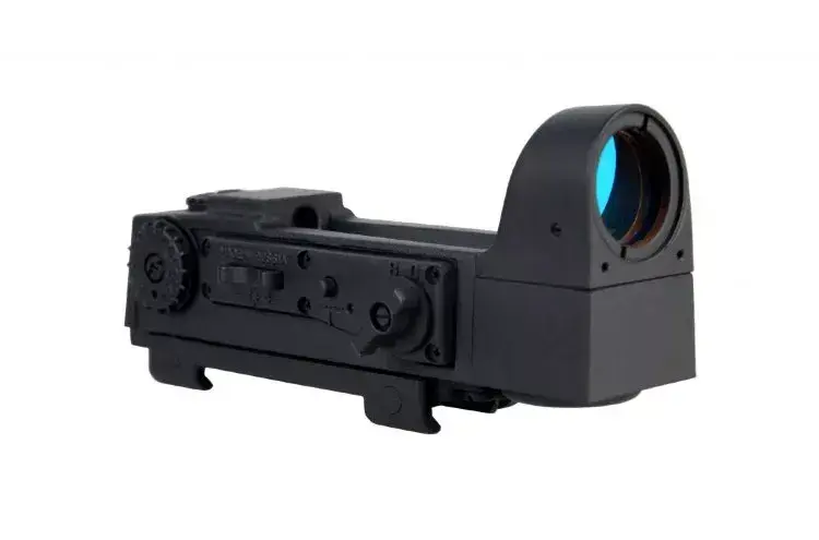 Открытая оптика. Конструкция и оптические параметры позволяют использовать коллиматор днём, в сумерках или светлой ночью. Метка и цель расположены в одной плоскости, можно наблюдать и прицеливаться как одним, так и двумя глазами. Неограниченное поле зрения, никаких визуальных искажений. Параллакс отсутствует.