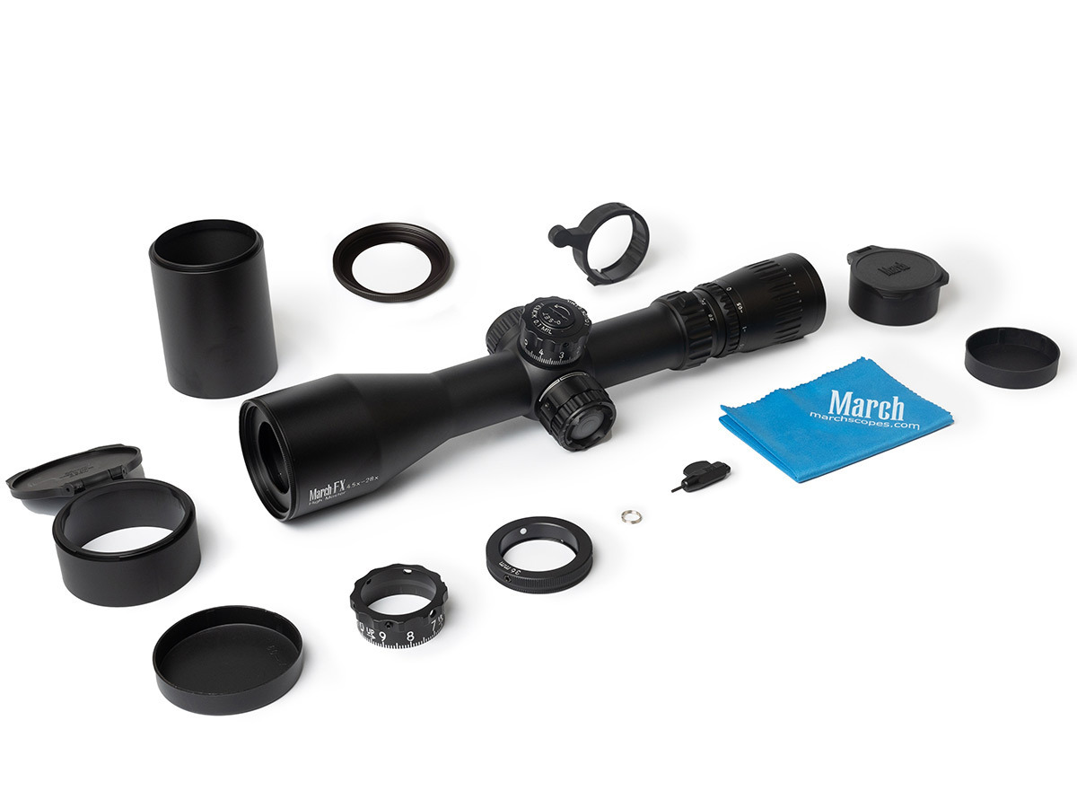 Прицел March-FX 4,5-28x52 с широким углом обзора и переменной кратностью 4,5-28 – профессиональное оптическое изделие с широким спектром применения: охота, стрельба на средние дистанции, высокоточная стрельба на сверхдальние дистанции.