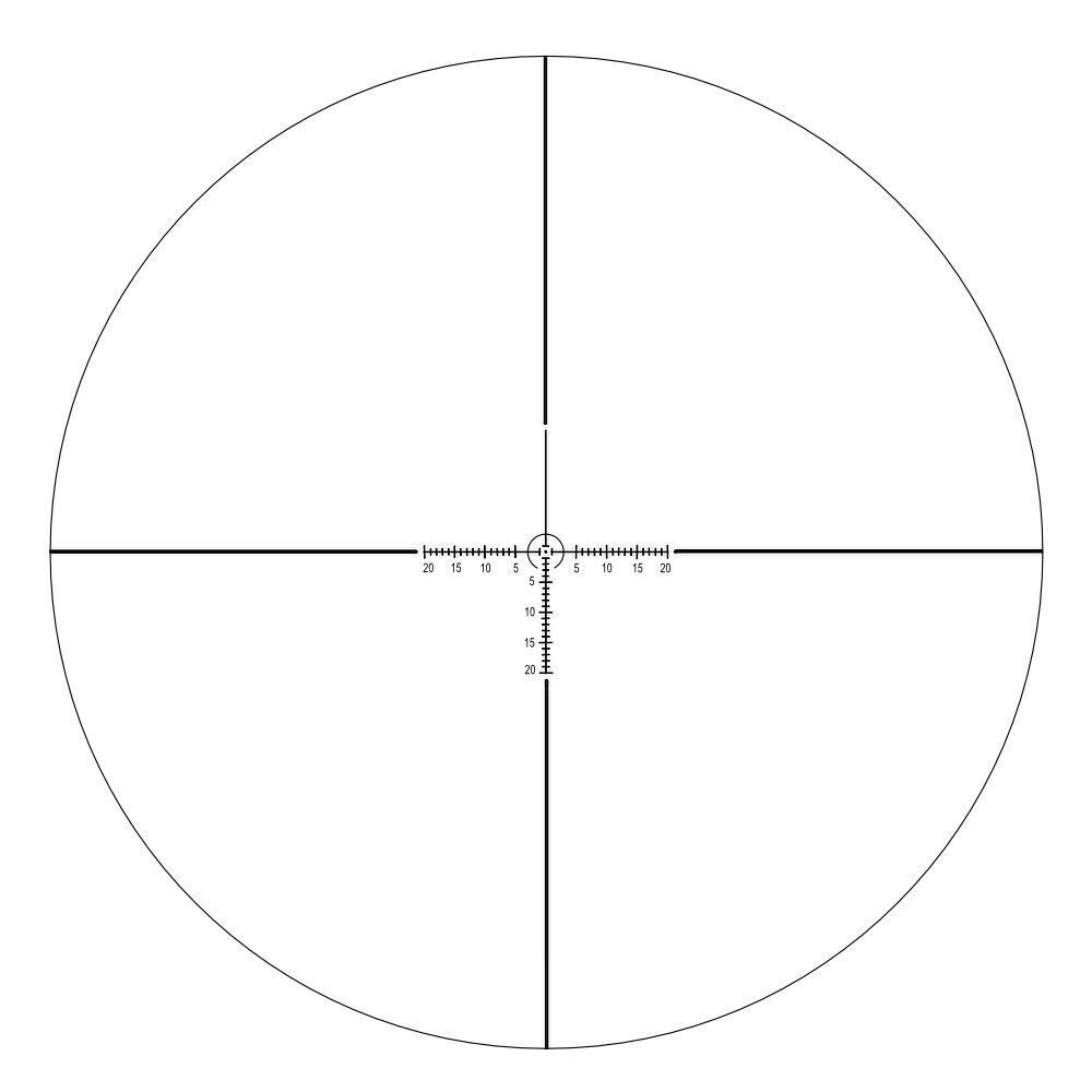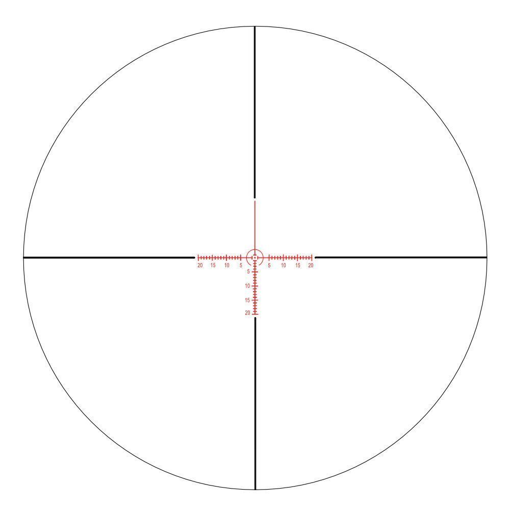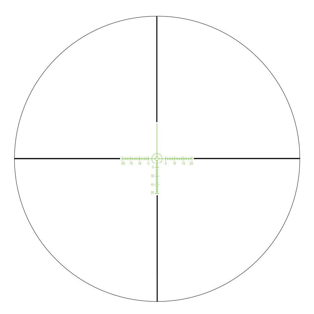Прицельная сетка со шкалой поправок вытравлена на стекле и расположена во 2 фокальной плоскости окуляра. При изменении кратности прицела размер сетки в поле зрения не меняется. Сетка хорошо видна при пасмурной погоде и в сумерках благодаря зеленой/красной подсветке с плавно регулируемой яркостью.
