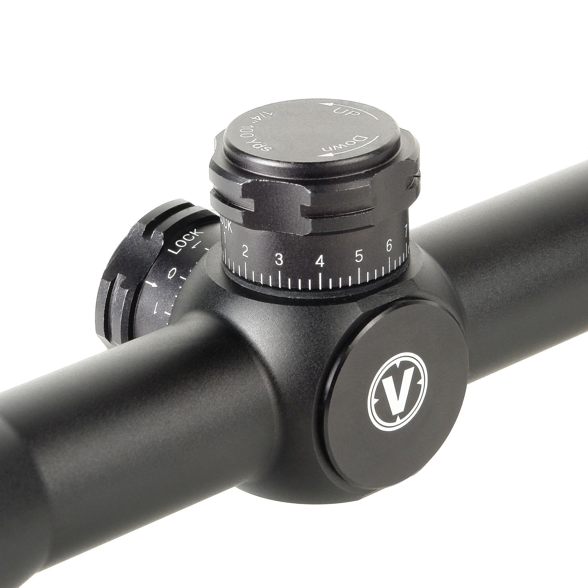 Механизмы ввода боковых и вертикальных поправок в виде тактических барабанов обеспечивают условия для высокоточной стрельбы. Барабанчики ввода поправок блокируются механизмом (push/pull lock) и легко приводятся в рабочее положение вытягиванием их наружу. Шкалы механизмов ввода поправок отградуированы в дюймах, цена 1 клика – 1/4" на 100Y (примерно 7 см на 100 м). Клики четкие, тактильно ощутимые. Стрелок, не отвлекаясь от наблюдения, может оперативно внести поправки с учетом расстояния до цели, ветра, веса пульки и т.д.